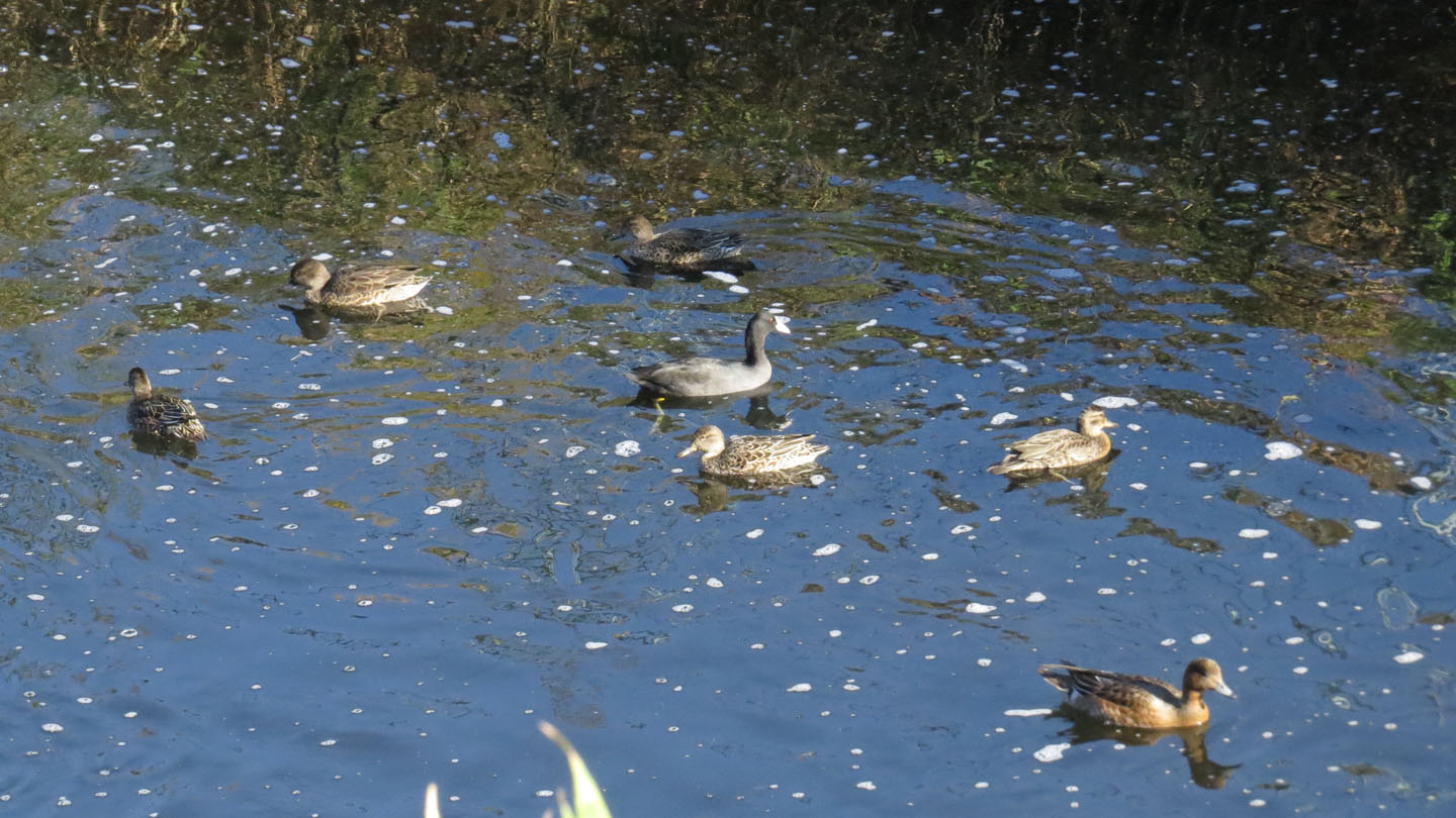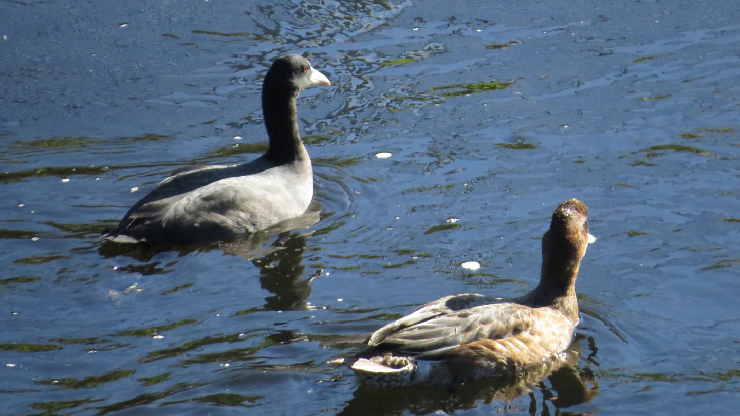 ここは、確認できなかったのですが、オオバンがヒドリガモのお尻を突っついたように見えたのです。以前、ヒドリガモがオオバンのお尻を突っついていたのを見たのですが、これはコミュニケーション?なのでしょうか?