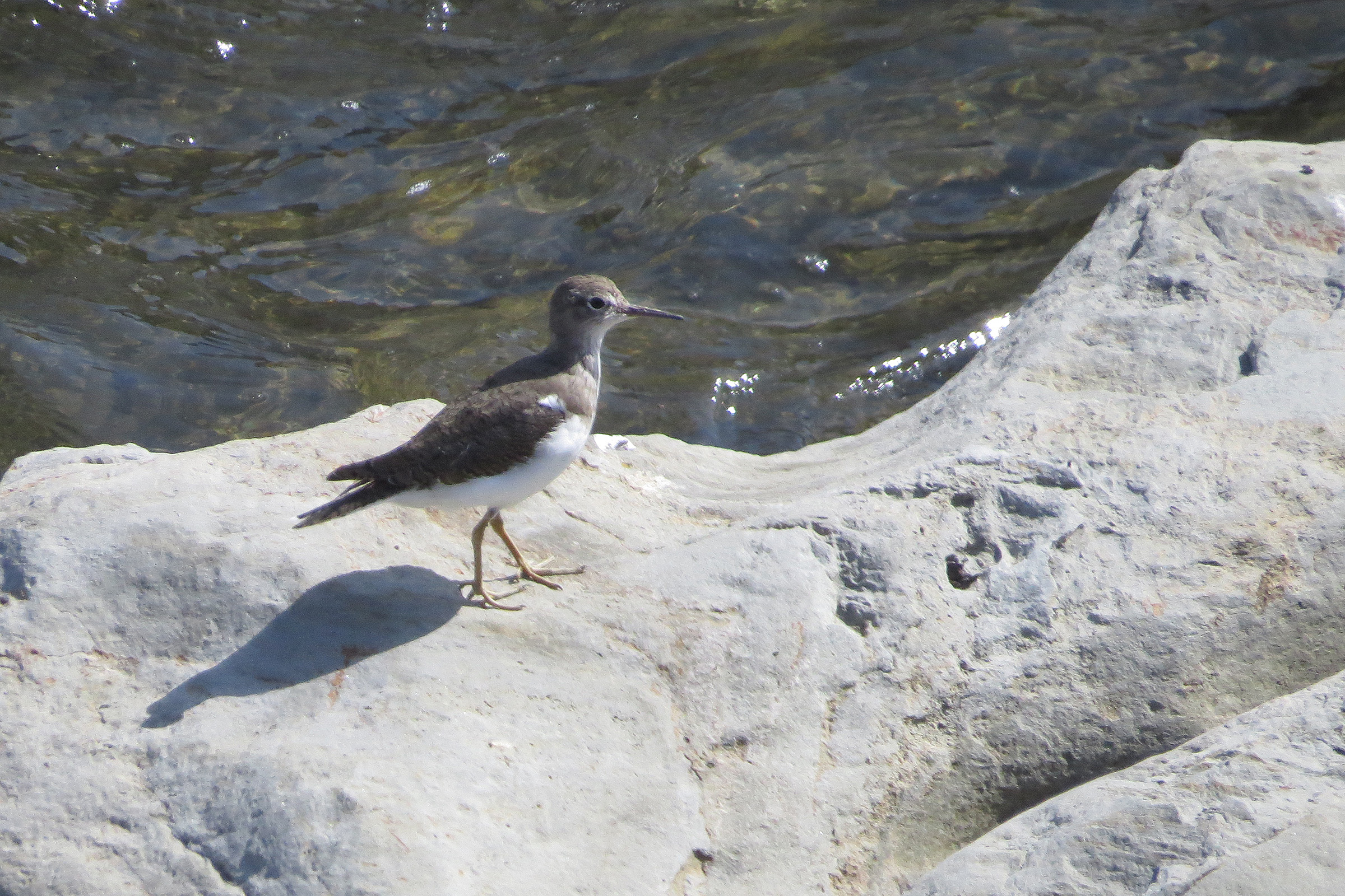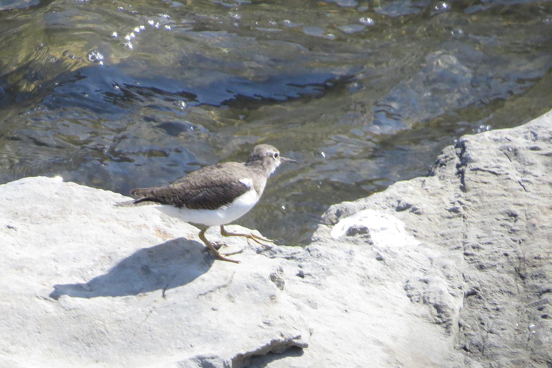 イソシギが恩田川の河川中央にある岩の上を歩いていました。この場所も護岸工事でなくなってしまいそうだなぁと思いつつ。