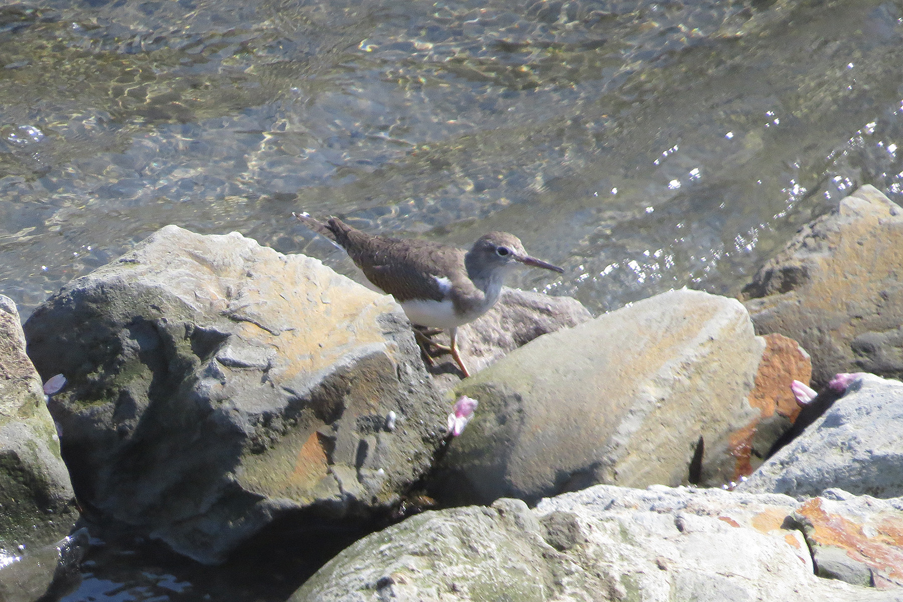 イソシギはお尻を上下にフリフリしてるのが動作の特徴ですが、飛び方もなかなか特徴的だなと思います。この季節は繁殖期に入るためか、「ピョピョピョ」とか「ピィー」と結構大き目の声で鳴きつつ飛び去ります。