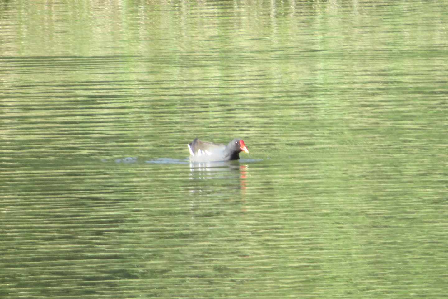 こちらは泳いでいました。雛は見当たりませんでした。まだ少し早かったようです。しかしいつも思うですが、水かきがない分、大きくて長い指の脚を持つバンですが、泳ぐのが結構早いです。