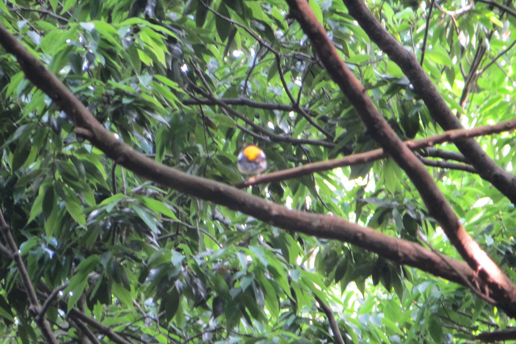 そしてこれまたどうやったらこうなるのかというようなショットですが、キビタキです。誰がなんと言おうとキビタキなんです。オスなんです、しかも。ここまで綺麗なオスがボケボケになると逆に雌を見たくなります。