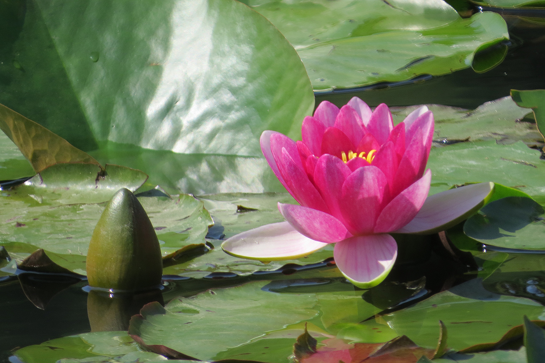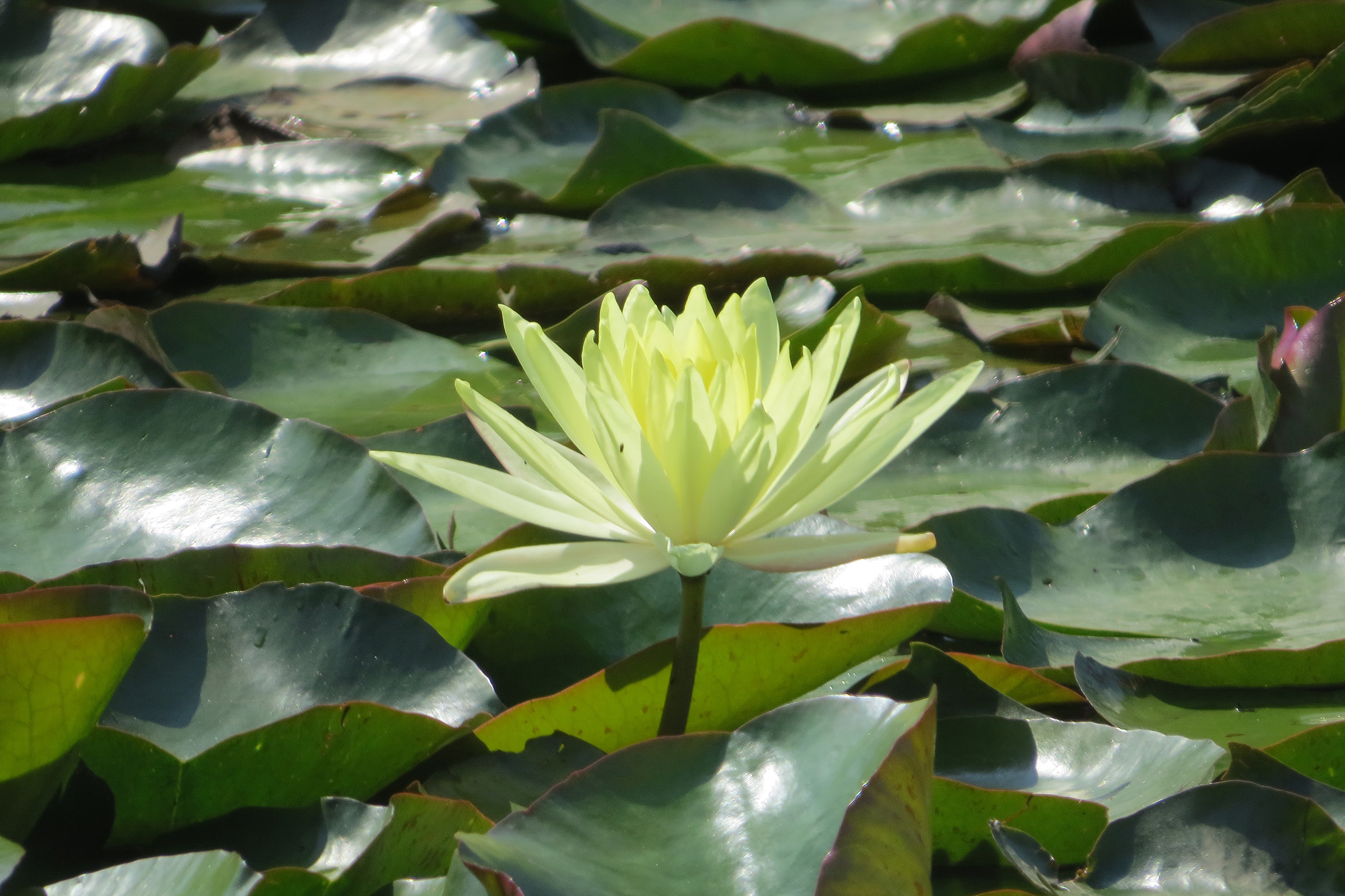 この時期は睡蓮も見事です。睡蓮とバンを収めようとしましたが、なかなかタイミングが合わず。