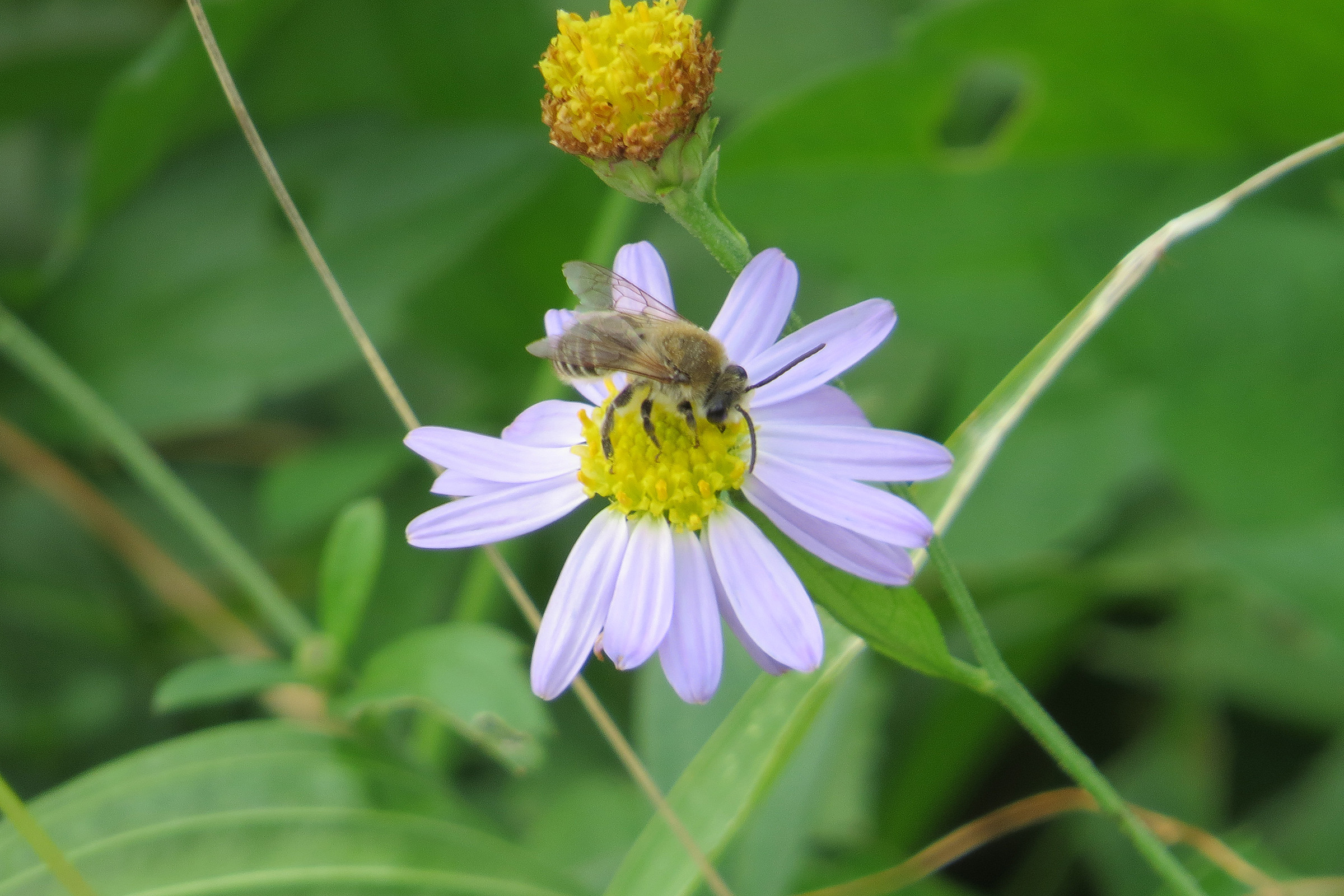 夏からこの時期にかけて咲くノコンギクです。実際にはもっときれいな紫色なんです。そしてそろそろ冬鳥がやってきます。