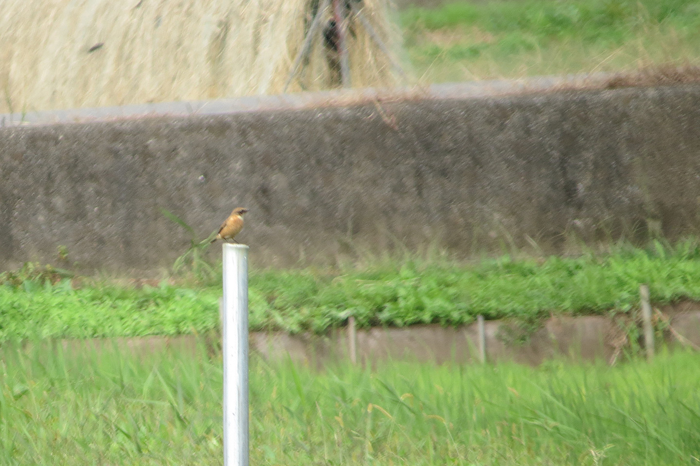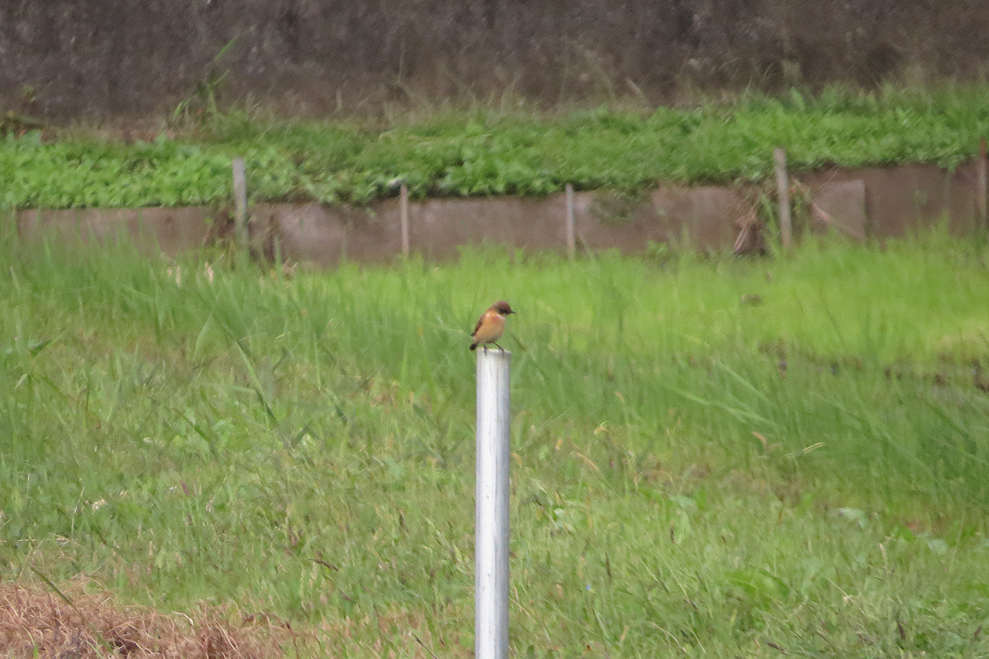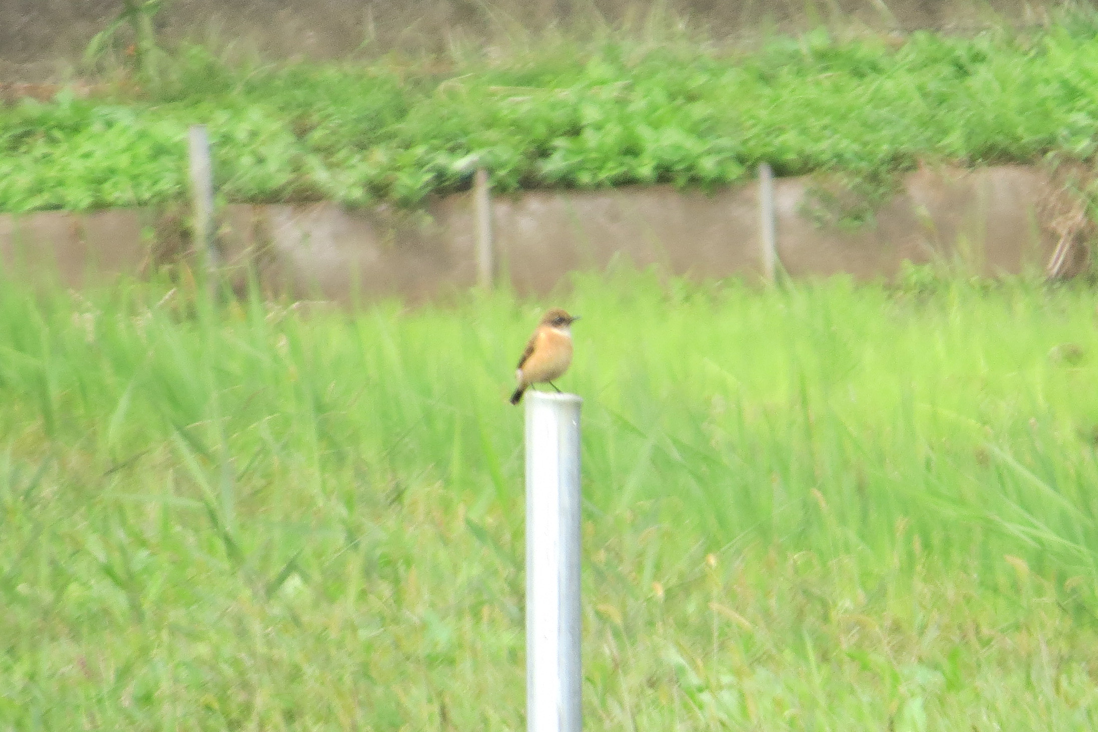 まだいました。ノビタキ雄です。また遠かったのですが、目立つ位置なのですぐに分かりました。ノビタキが今年は多くみどりの鳥地区に訪れているようです。