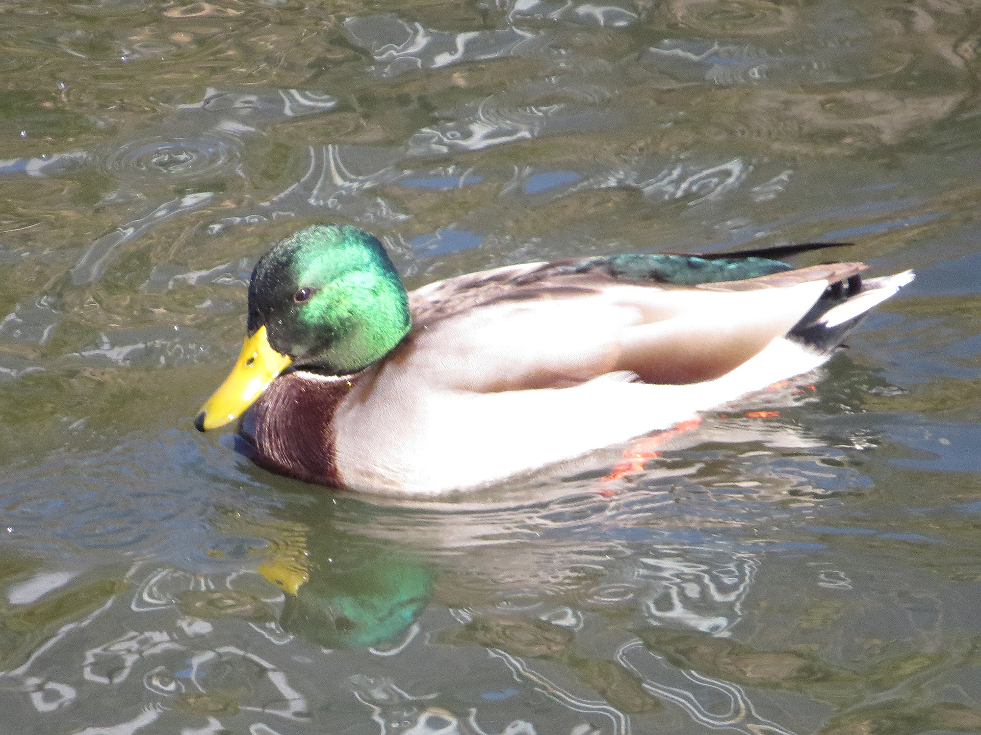 冬のカモ到来のシーズン。コガモを筆頭に、ヒドリガモに続きやってくるのがマガモです。見事な緑色の頭です。