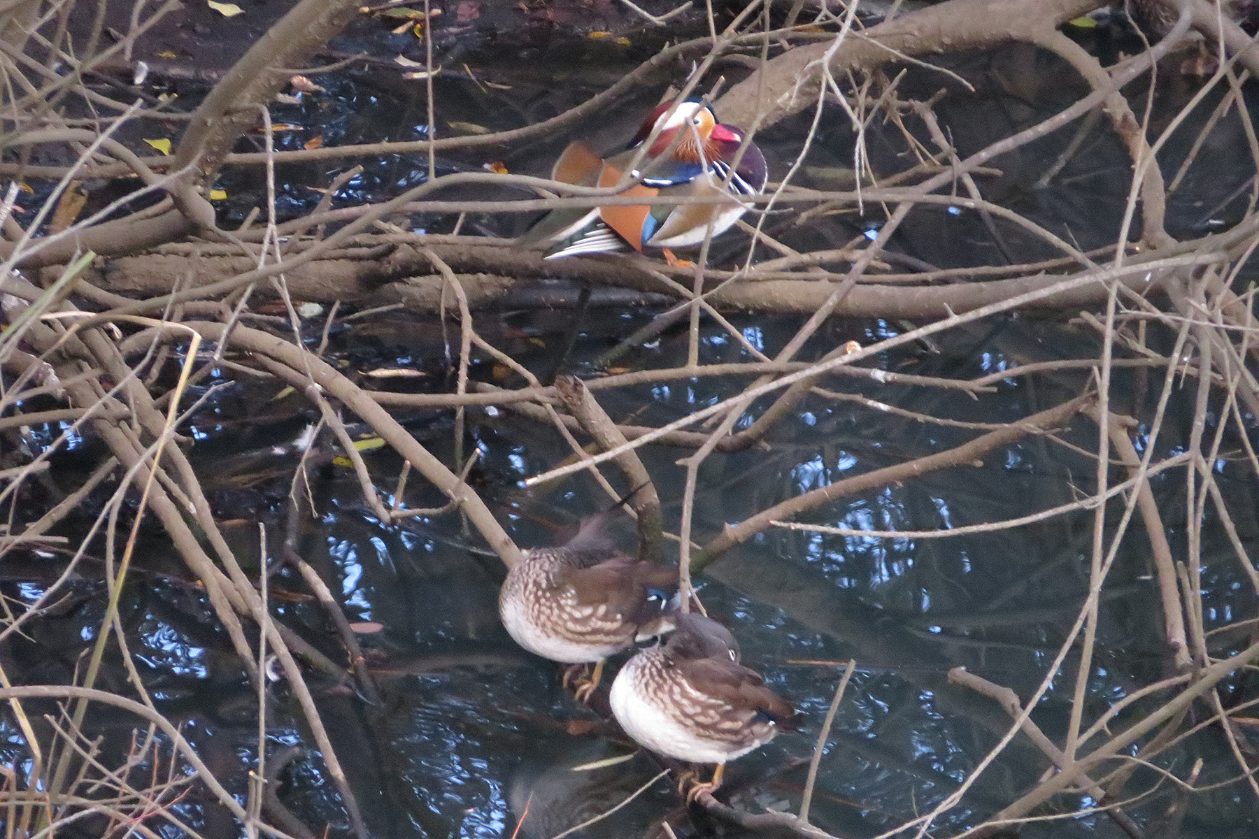 今年もやって来ました、オシドリです。漂鳥、または冬鳥扱いで、みどりの鳥地区には冬にやって来ます。