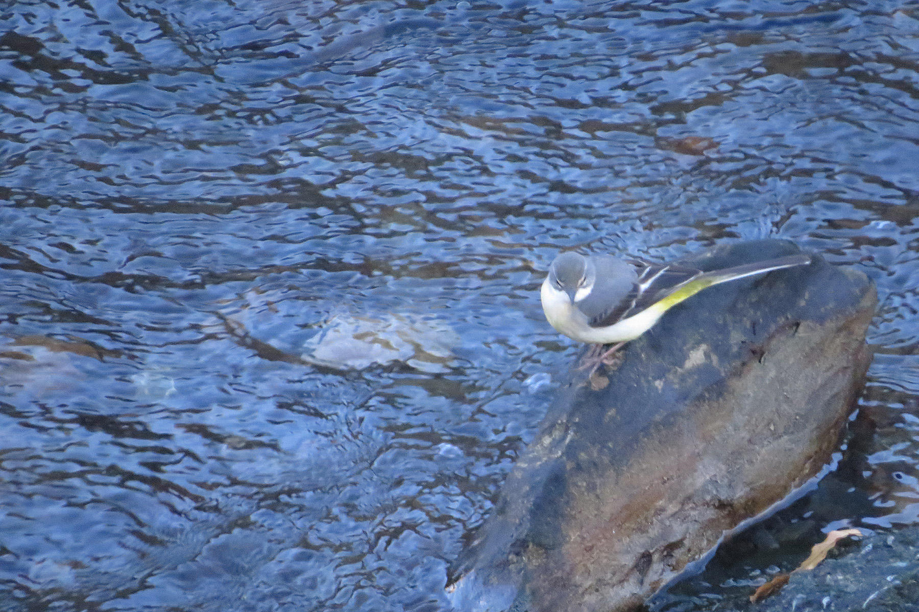 キセキレイは冬の恩田川では良く見られます。ただ、いつも川べりや、ごちゃごちゃした所にしか居ないので、こう言ったすっきりとした水辺でのショットは嬉しい限りです。