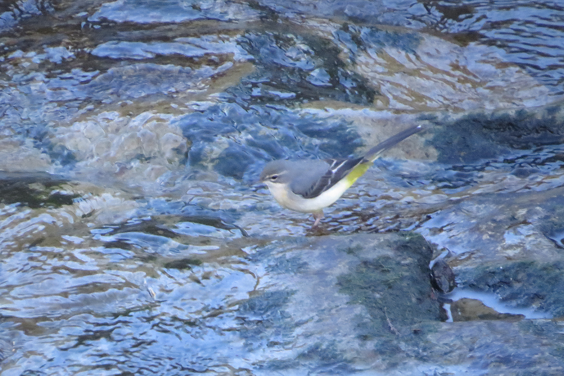 黄色いのはお腹と尾羽の付け根なので、良くわかりにくいですが、この個体のお腹はあまり黄色くないようです。若鳥はくすんだ色をしていて、あまり鮮やかな黄色ではないようですが…。ただの光の加減かもしれません。