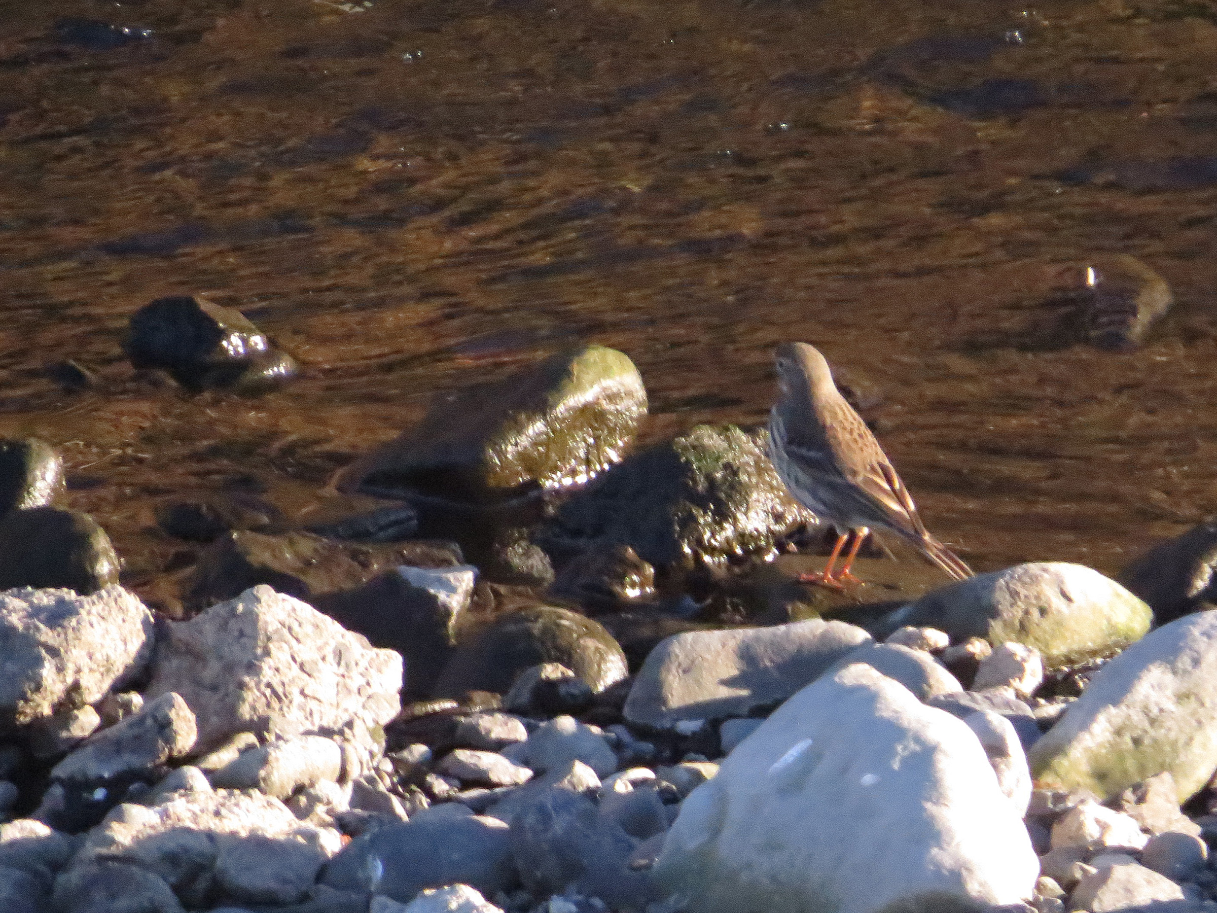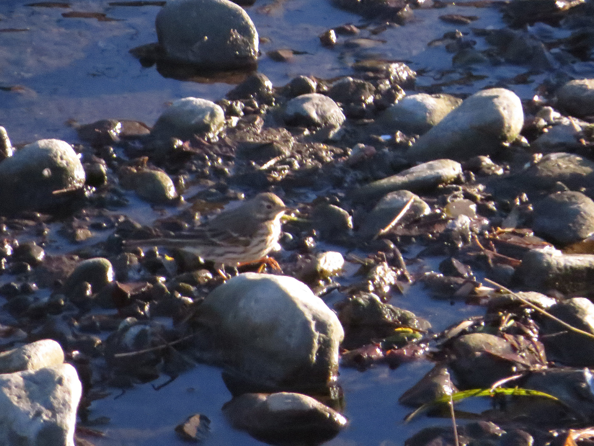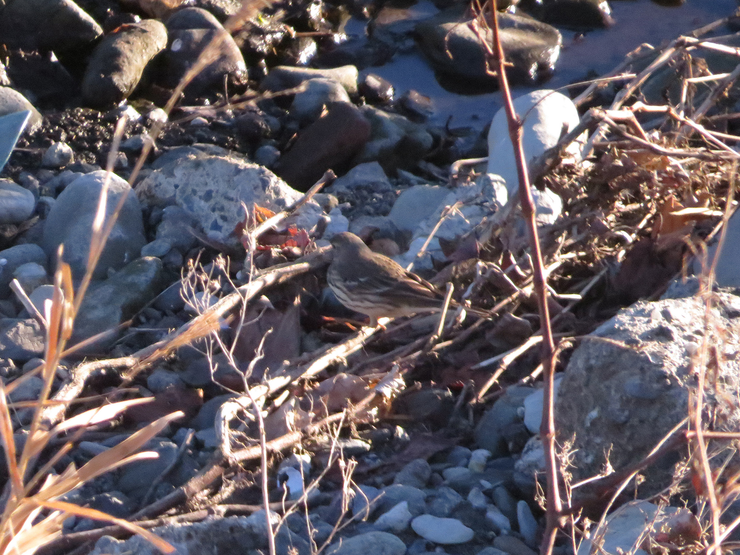 話題になるビンズイとタヒバリですが、なかなか近くで撮れないのですが、よくいる環境か、タヒバリは開けた場所に、ビンズイは森や林に多いという。でも必ずではないでしょう。この時は河原にいたのと、白斑がよく見えないのでタヒバリ認定です。