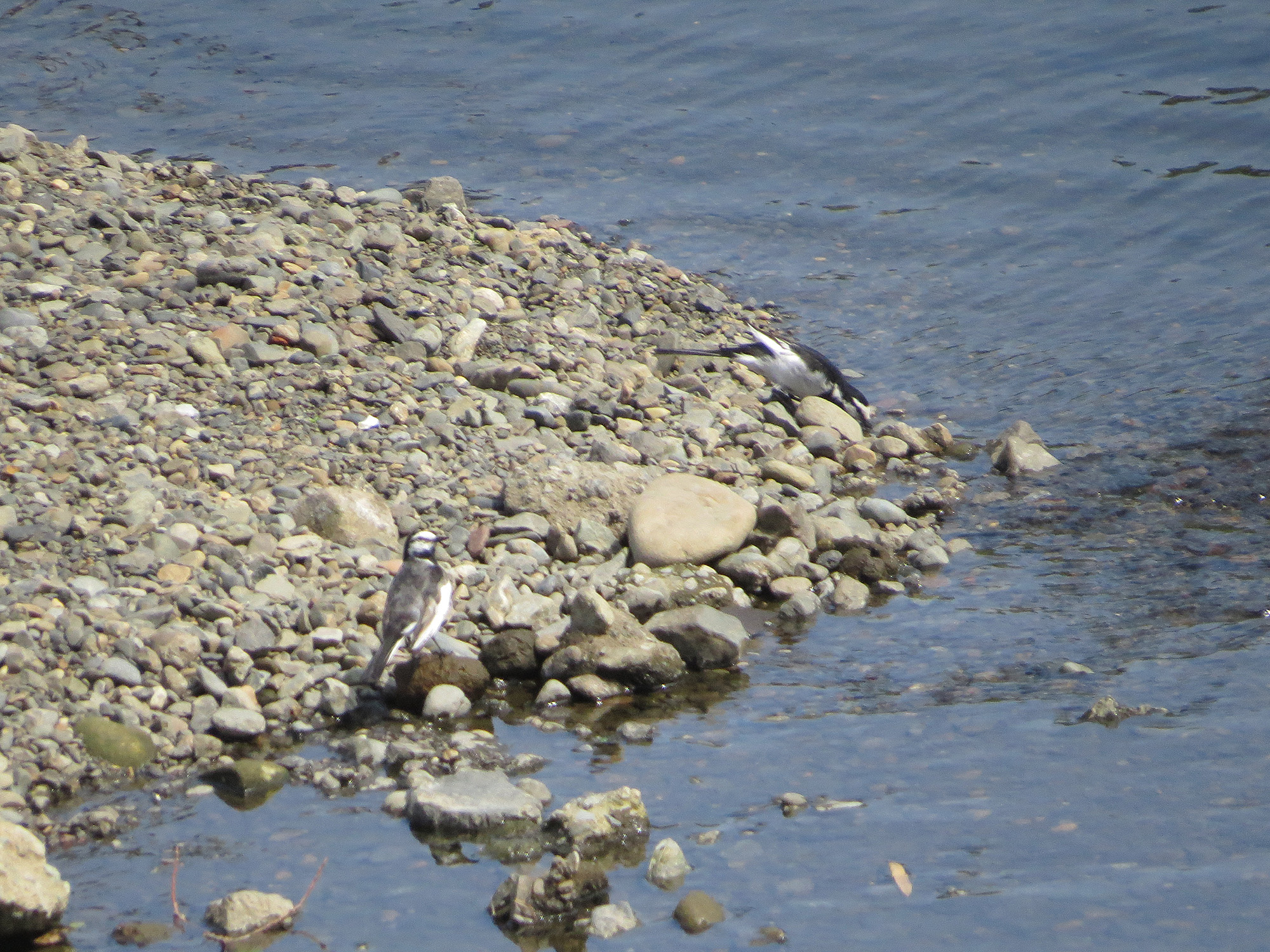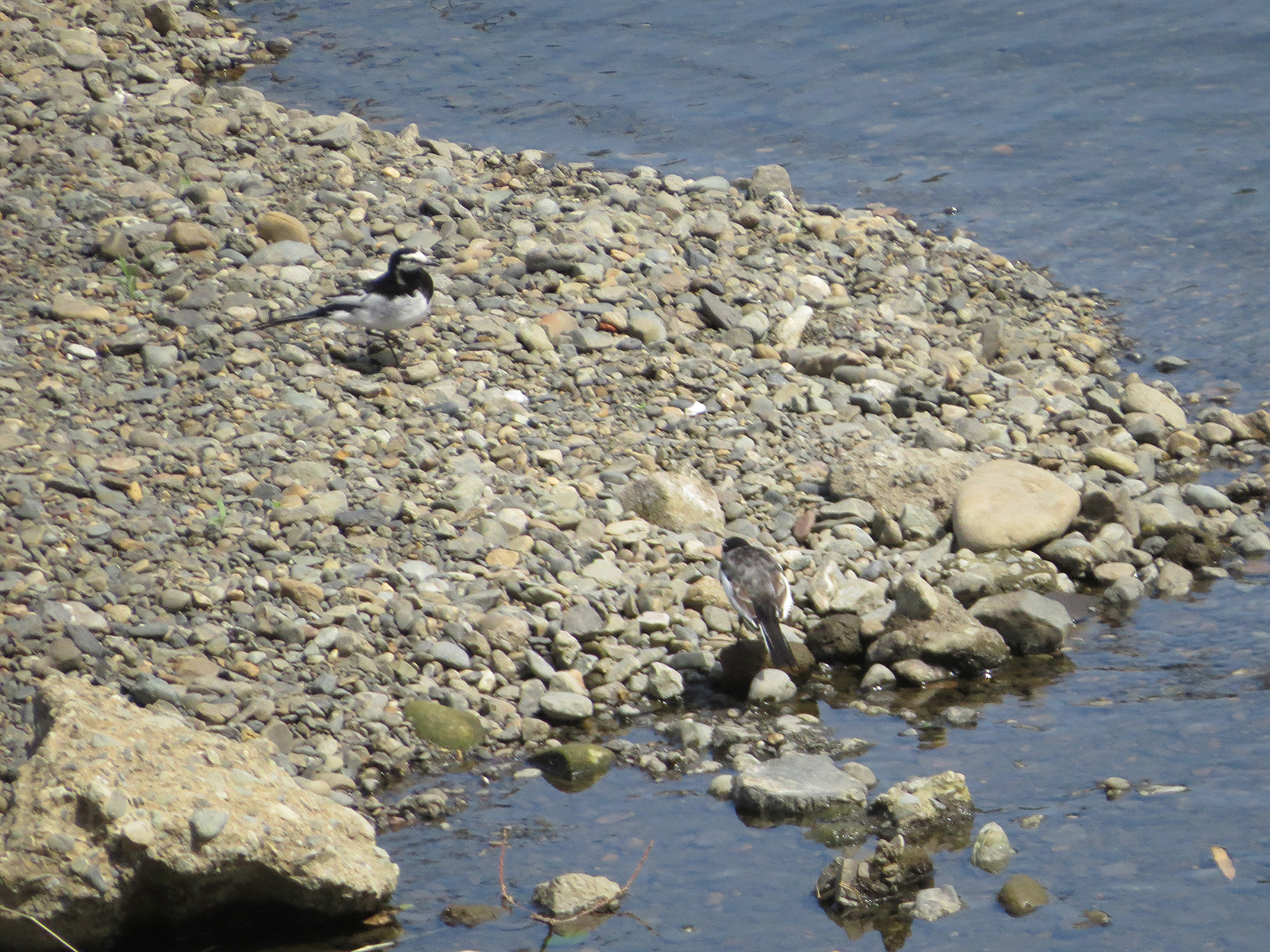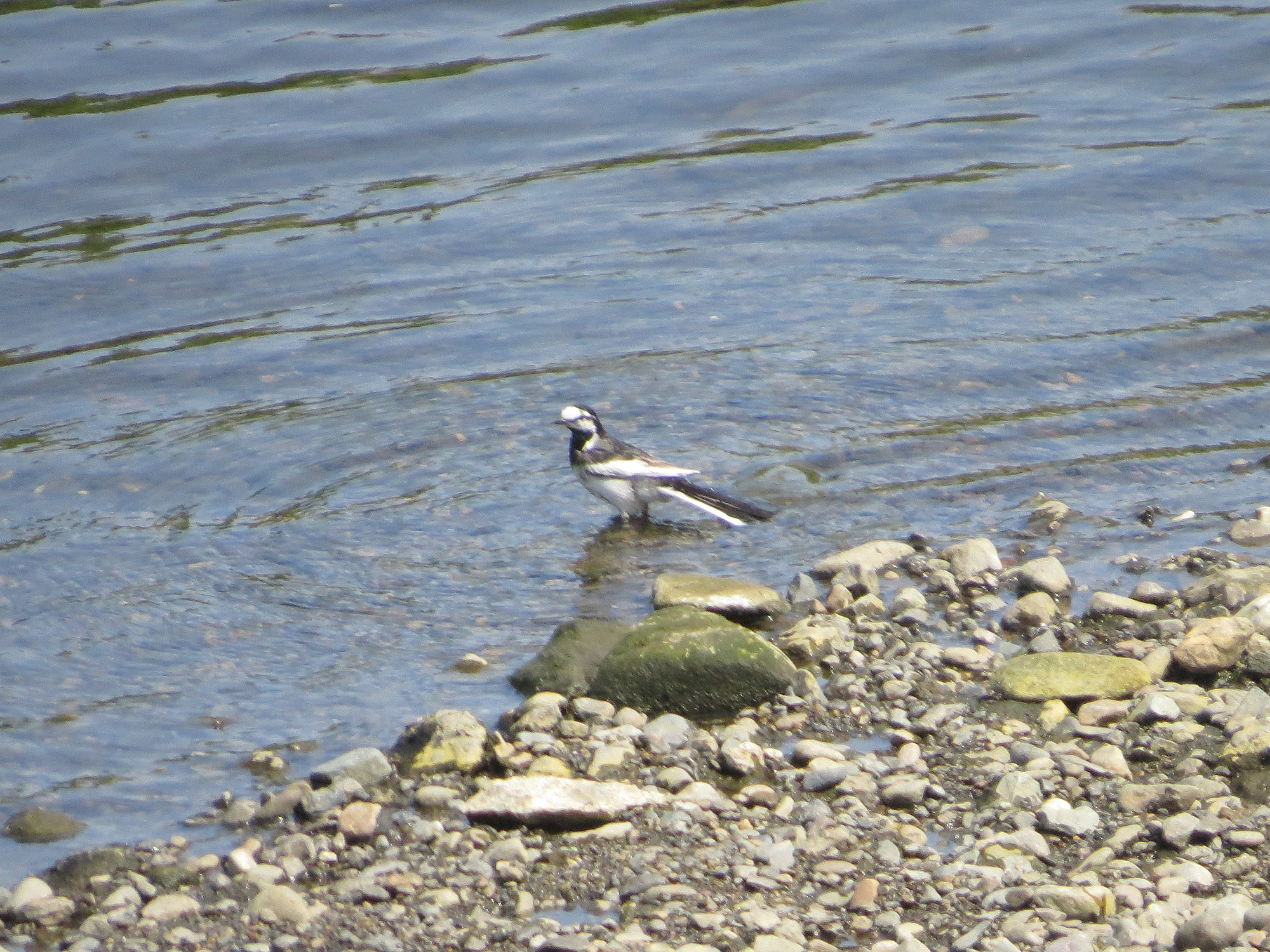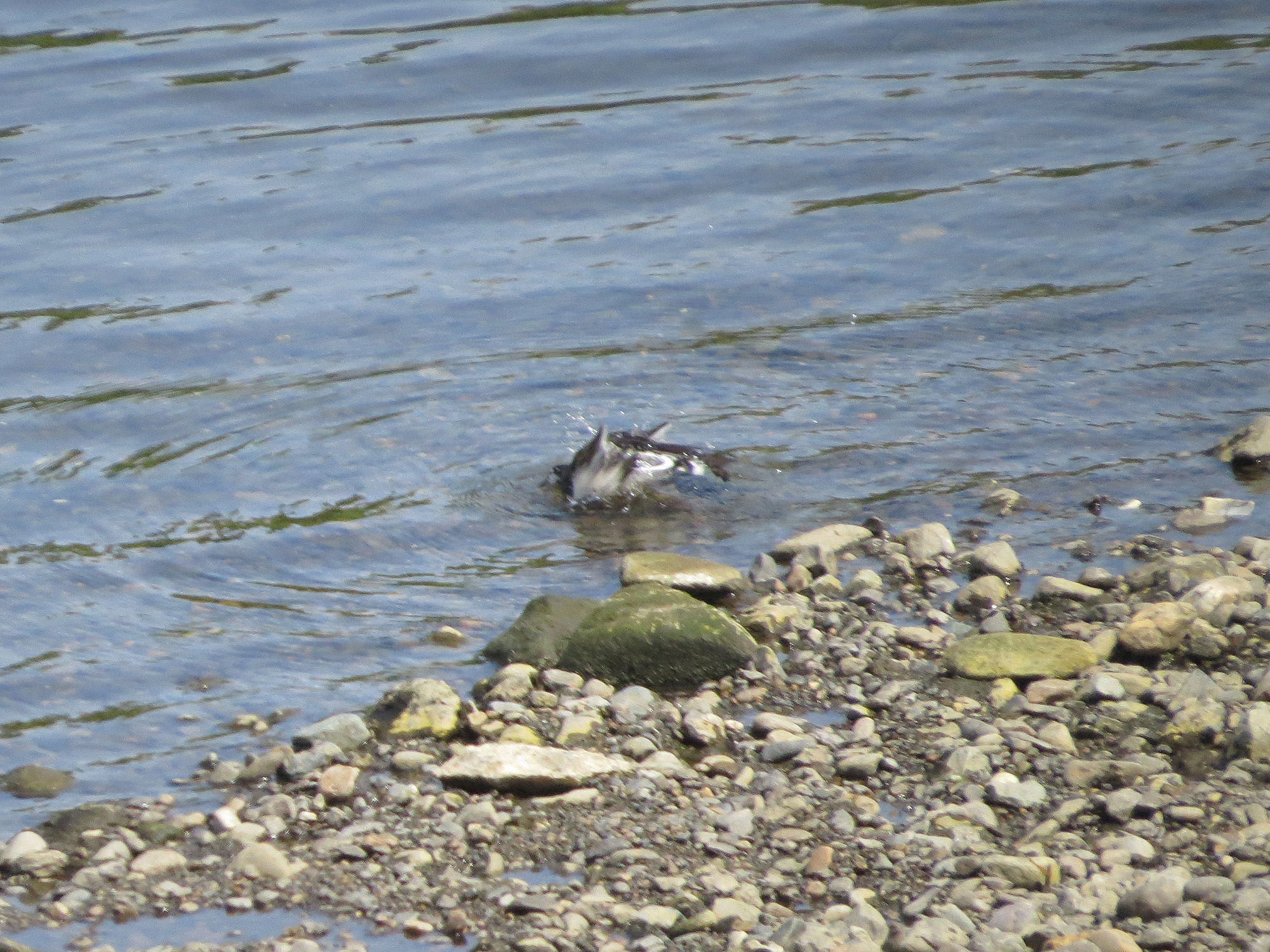 案の定ハクセキレイが水浴びを始めました。この日は6月初旬にして30度を超える暑さ。私も恩田川から鶴見川へずっと下って行きましたが、ヘトヘトになっていました。