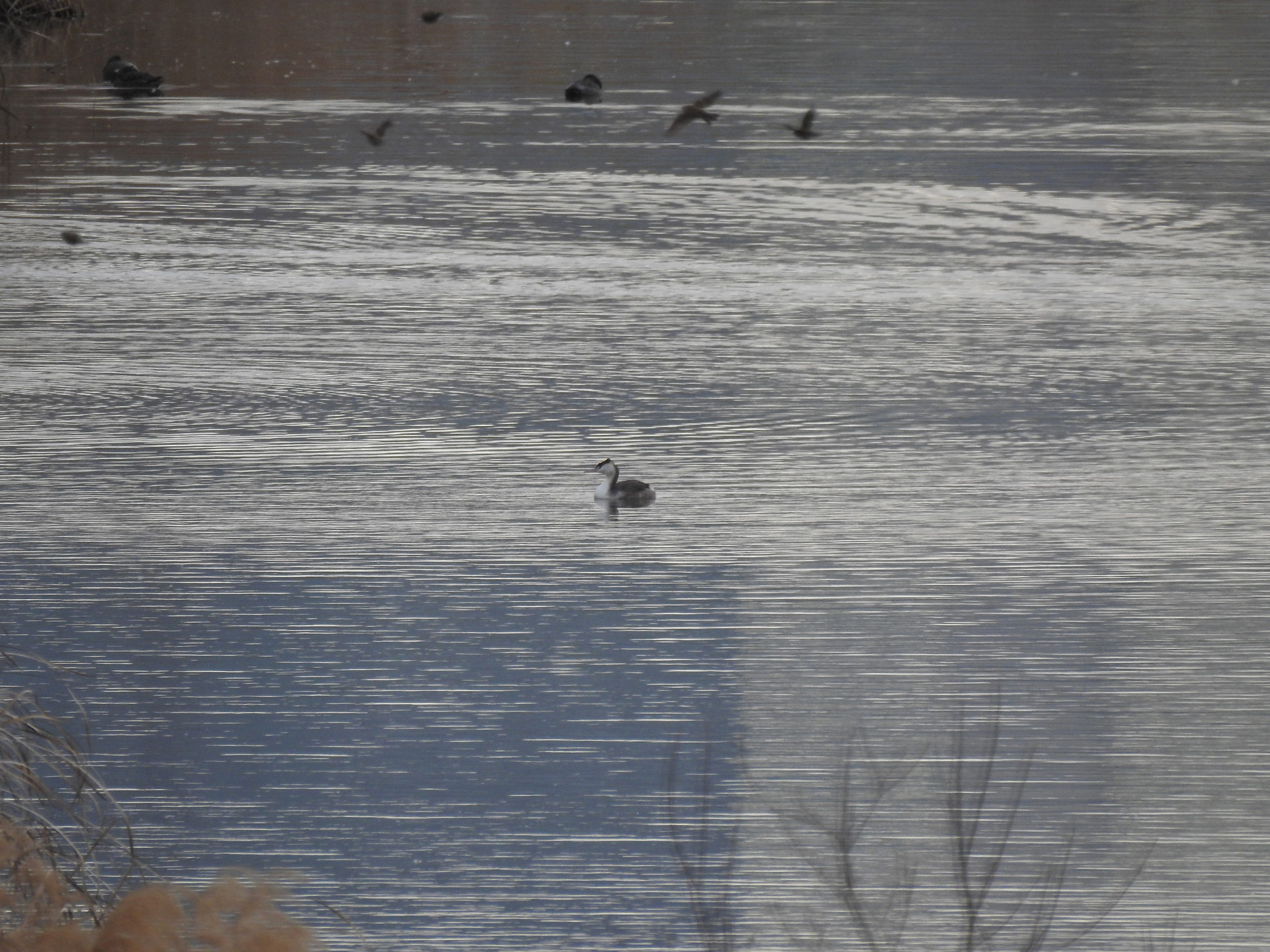 カンムリカイツブリ3羽@鶴見川近辺