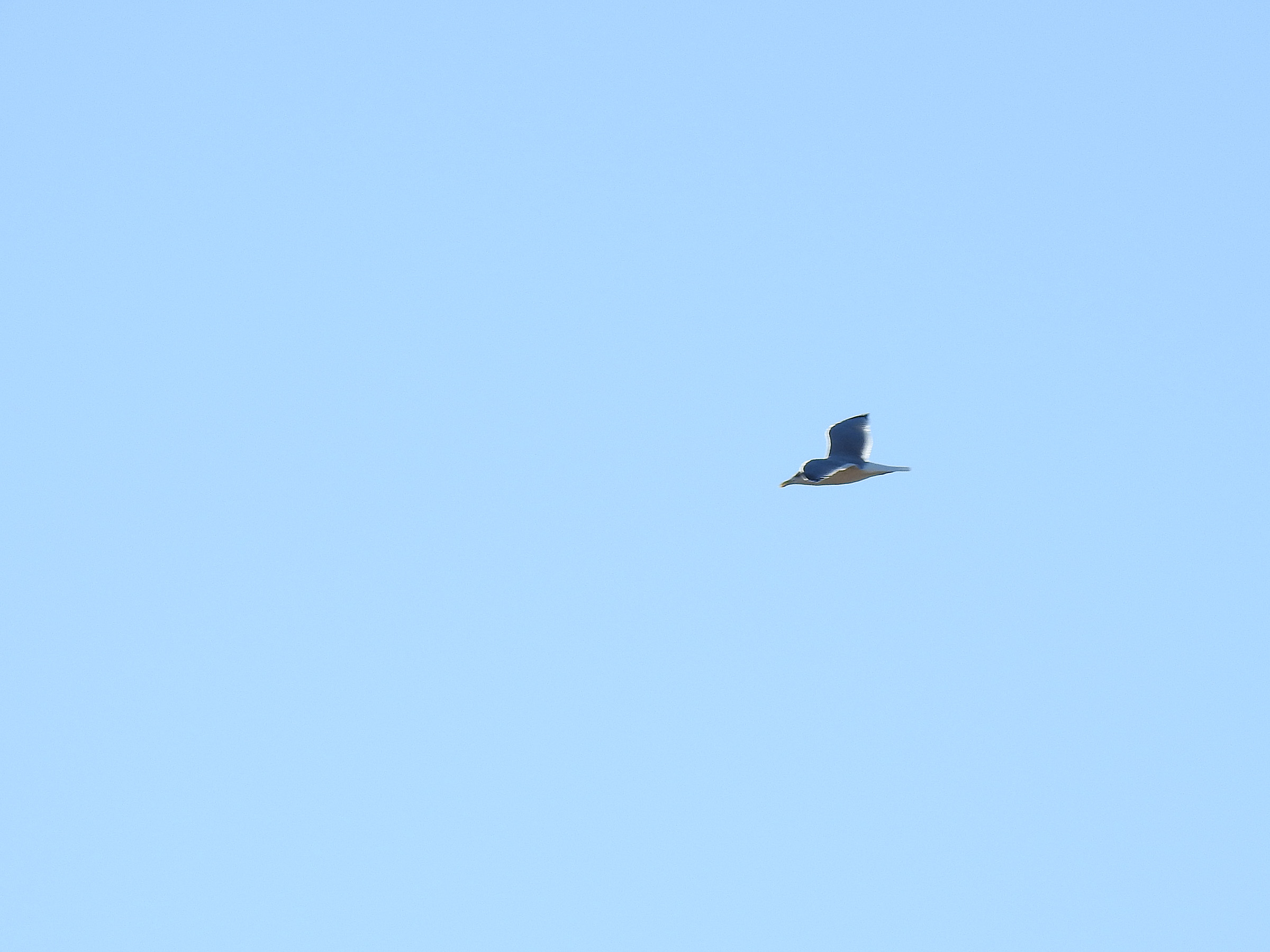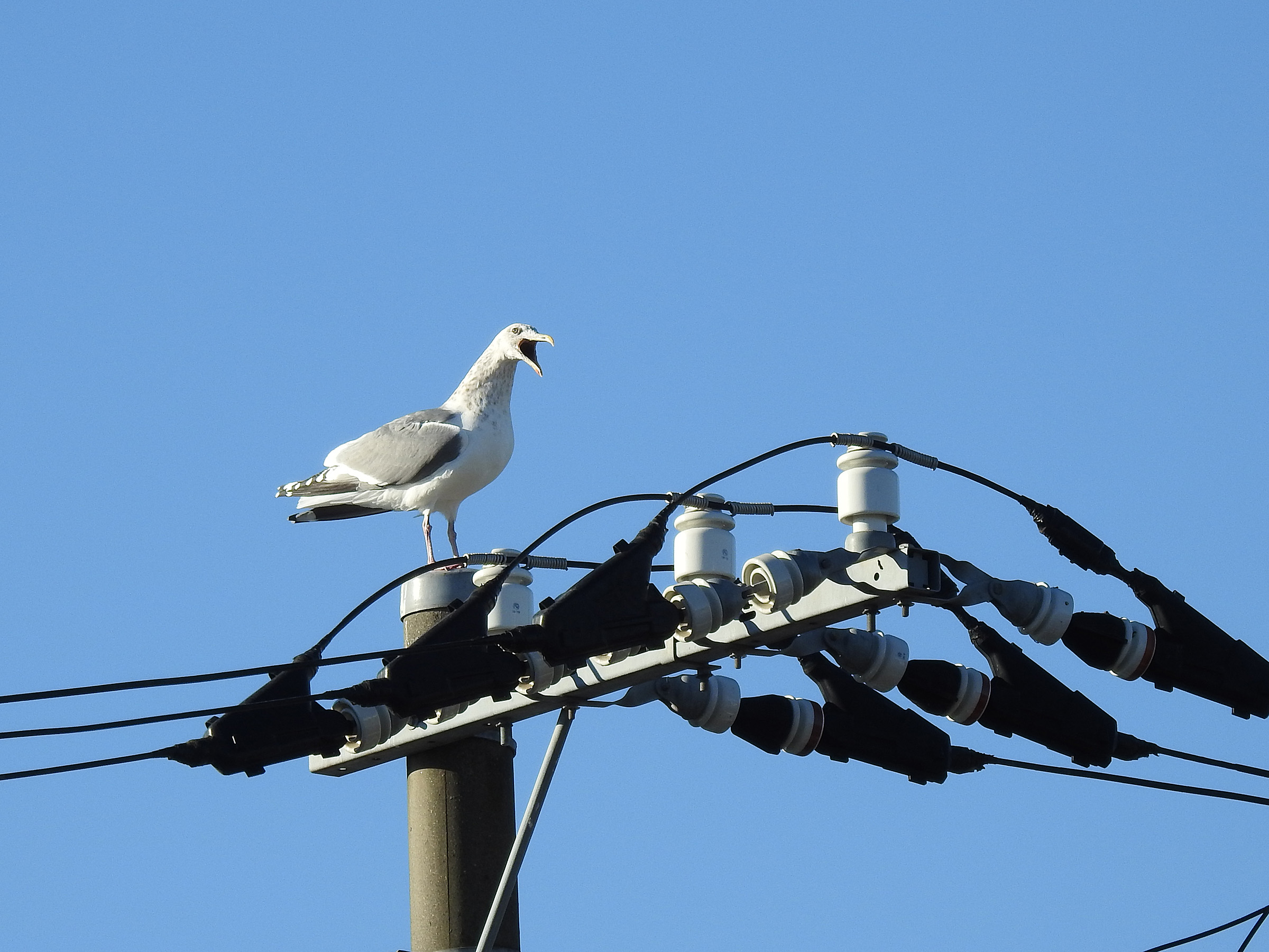 もう1羽のセグロカモメが飛んでいるのを見て、激しく鳴き出したのです。