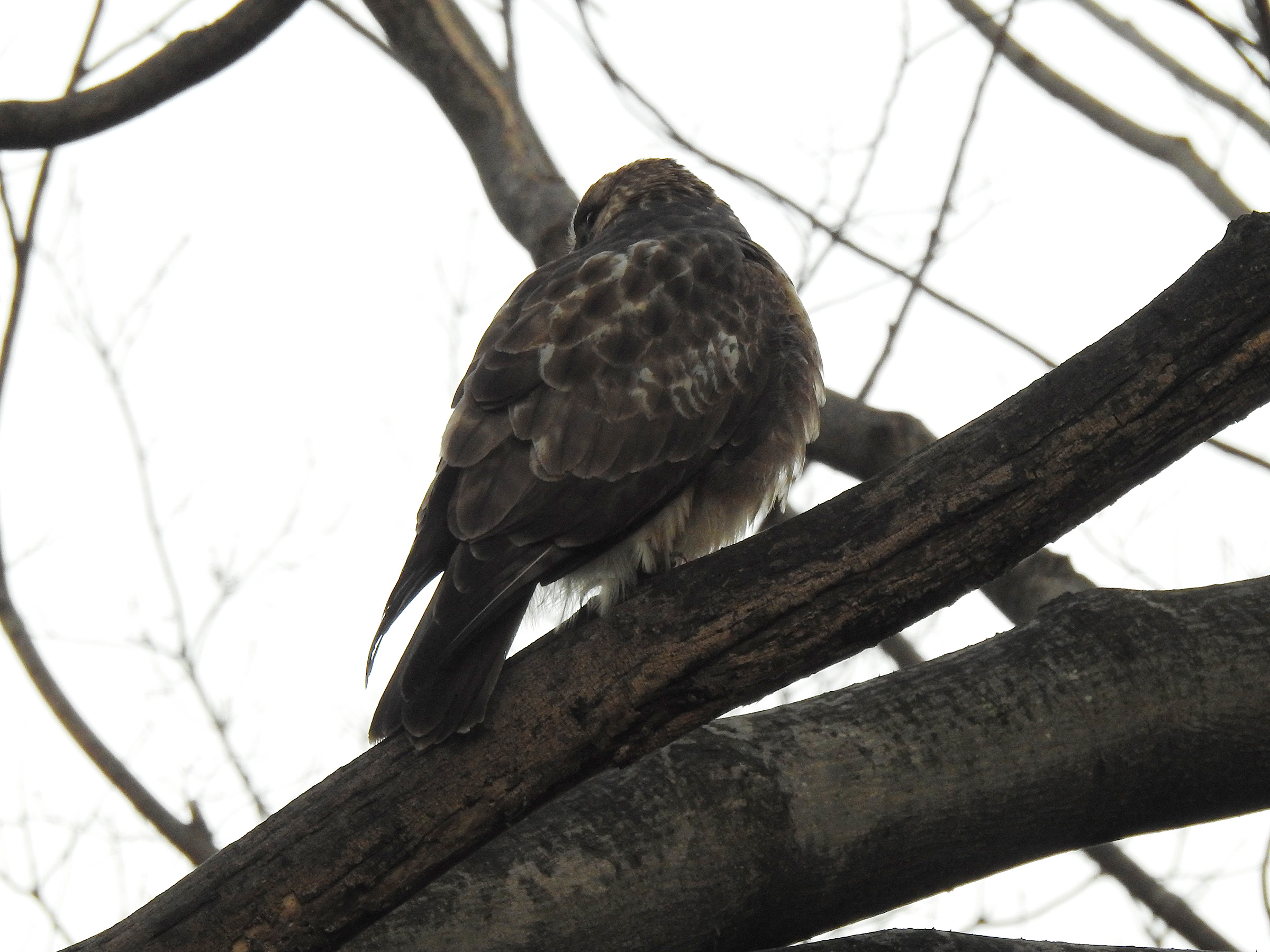 ノスリは雌雄ほぼ同色と図鑑でよく説明されています。脛(すね)に横斑が無いのが雌という見分けポイントがあるようですが、個体差もあるとのこと。脛、見えませんが…。