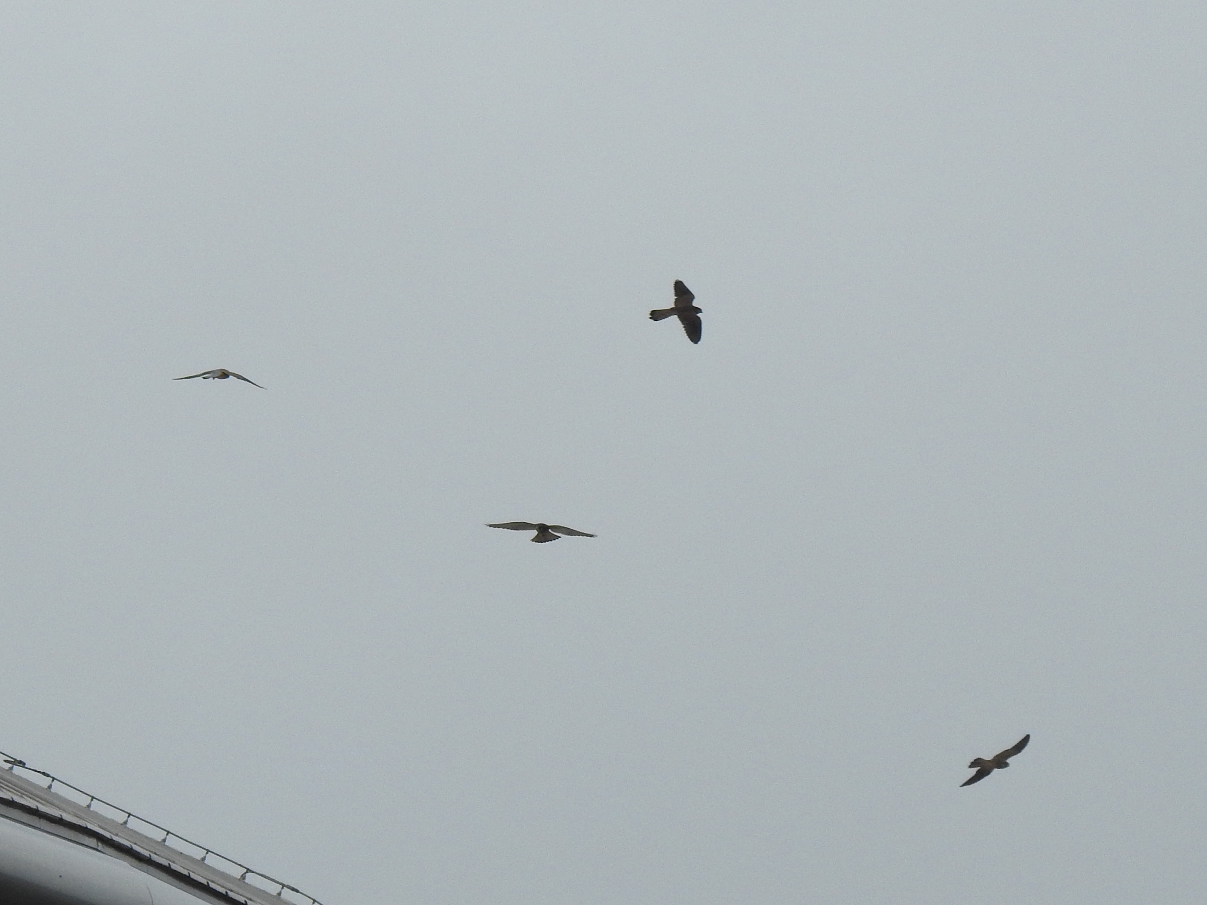 これは猛禽先生に伺いたいところですが、チョウゲンボウ家族?でしょうか。4羽同時に取れているのは一番上のショットのみでした。空は曇天ですが複数枚写真と動画でレポートいたします。