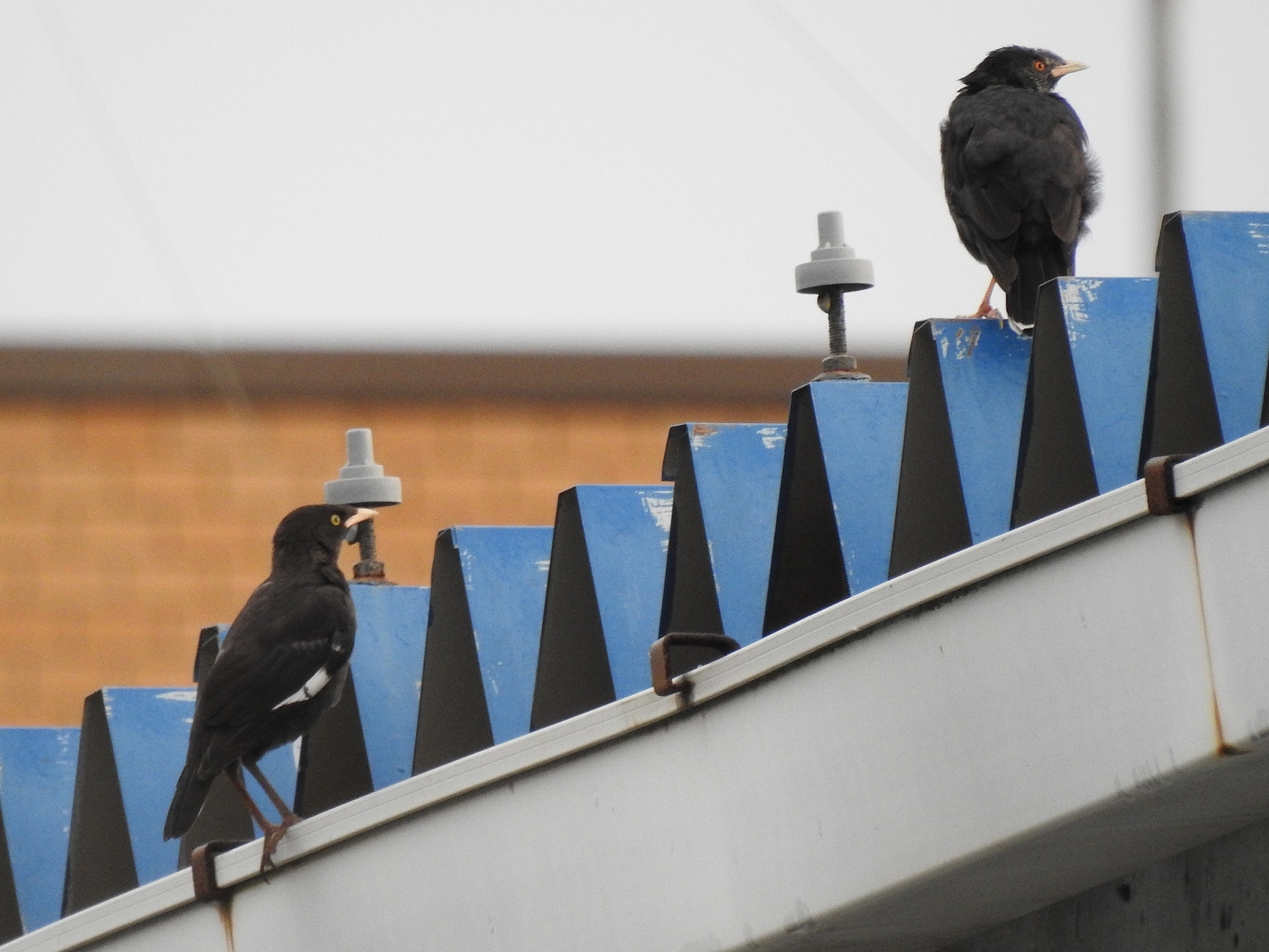 ムクドリは遠目にはやはりところどころ白い部分が目立ちますよね。ハッカチョウは黒いです。