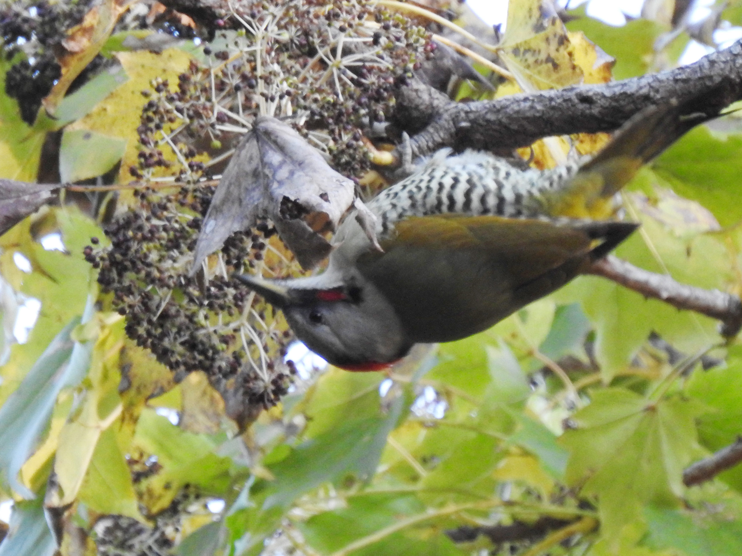 木を突いてばかりの印象が強かったのですが、秋から冬はアオゲラも木の実をよく食べるとのこと。そしてこのハリギリは野鳥にも人気が高いのです!