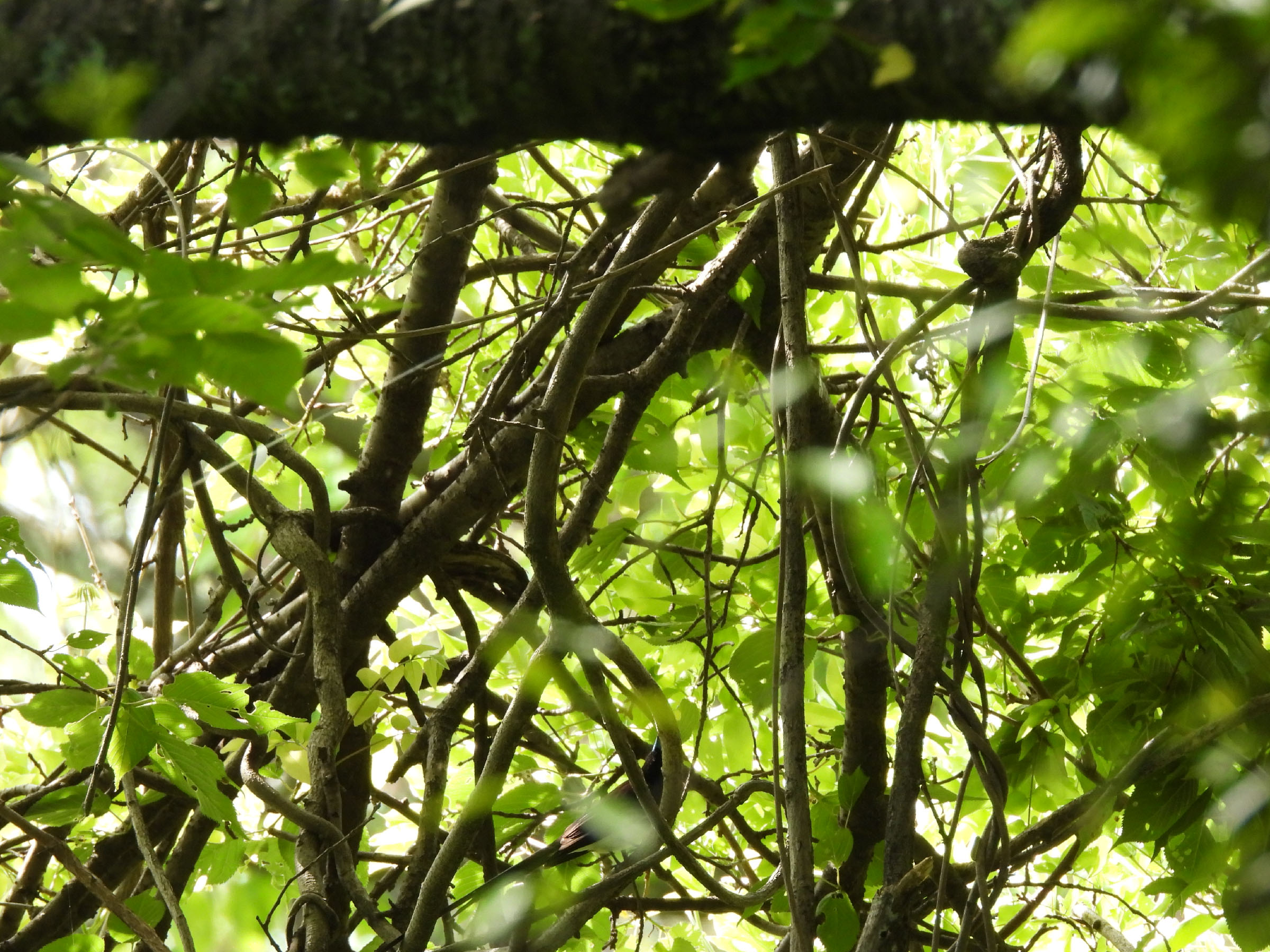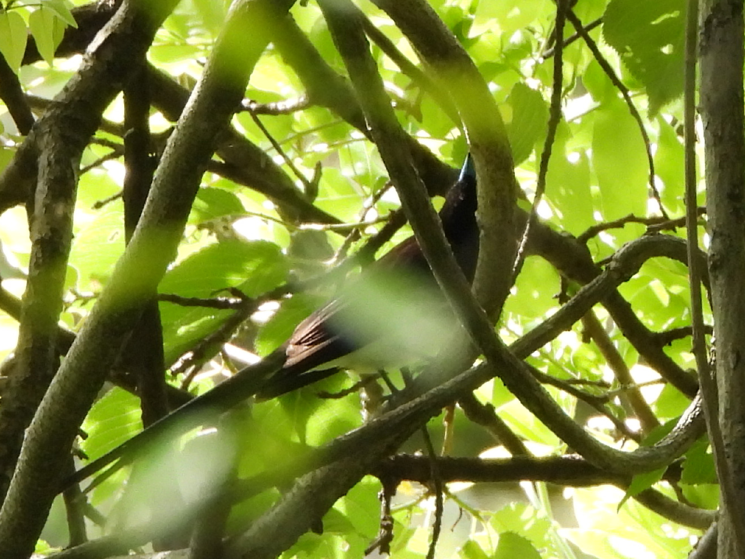 一応映っています。とにかく焦りました。尾が長くて黒い鳥が枝の間をスルスルっと動くのが見えたからです。