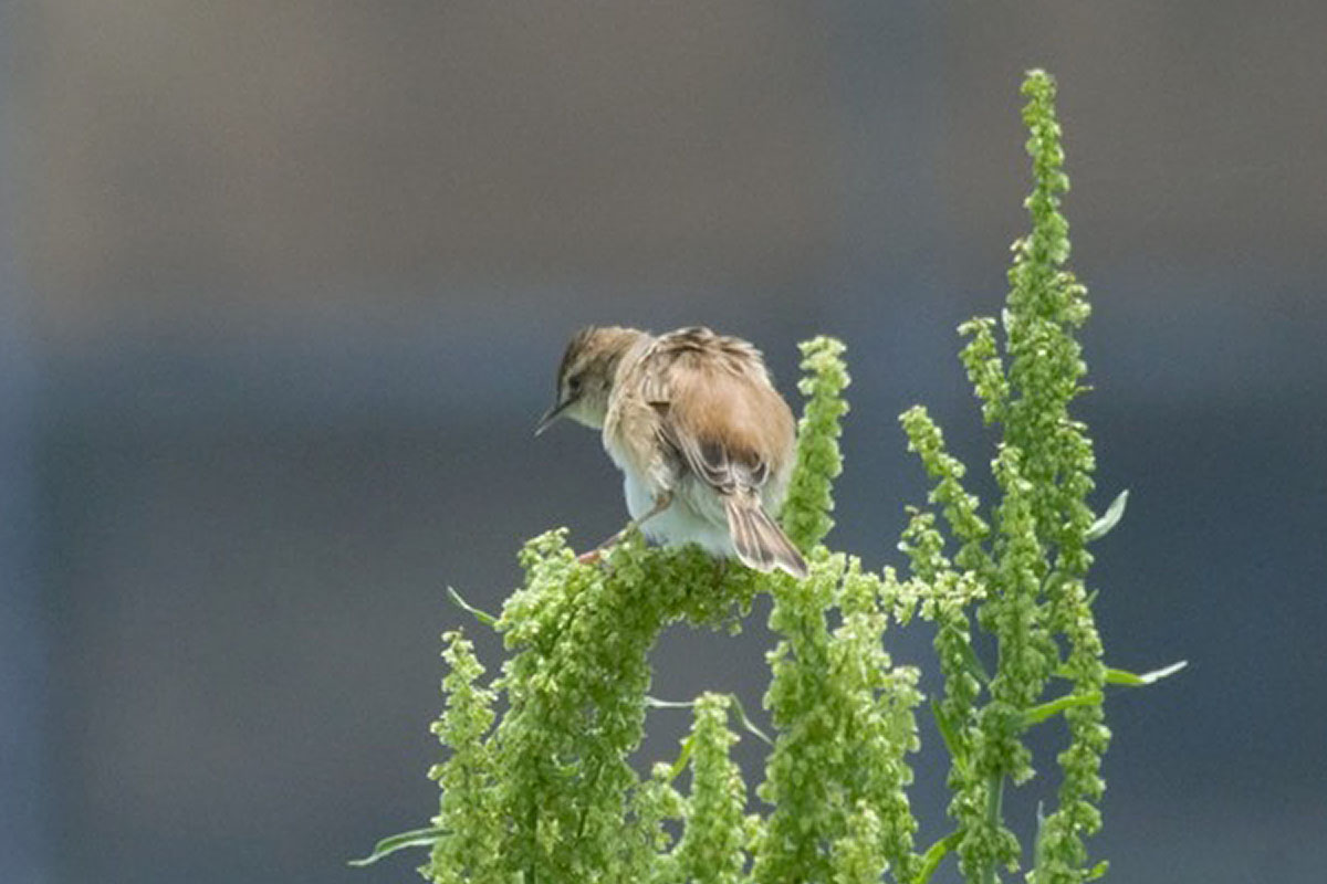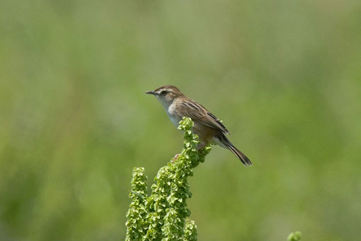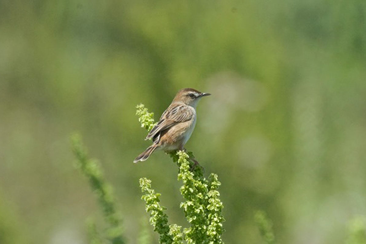 セッカの情報をご提供いただきました。13cmほどの小さな鳥ですが、この時期は鳴きながら飛び回って、写真のように草などの先端に留まることが多いので、見つけやすいです。