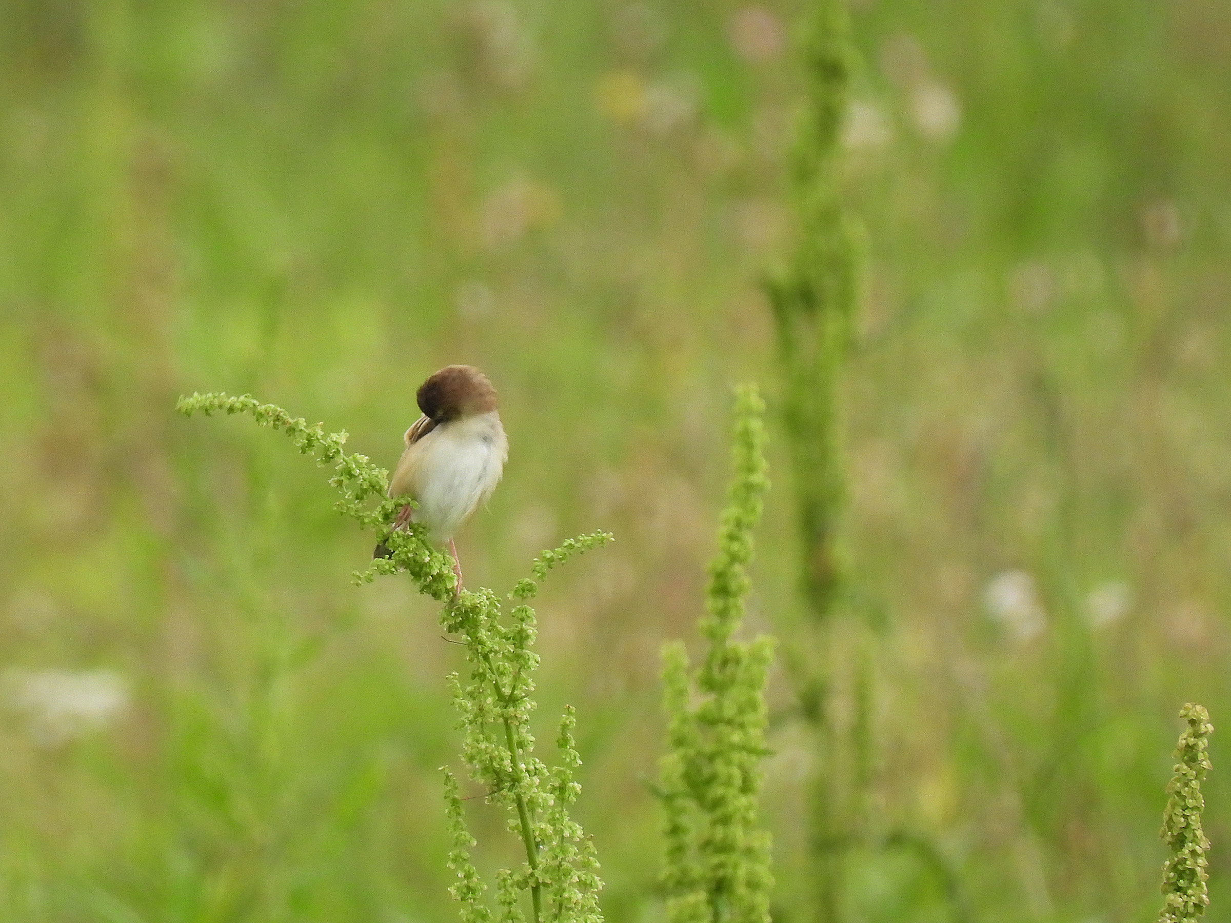 上の晴れの日に撮られたセッカよりちょっともふもふしています。