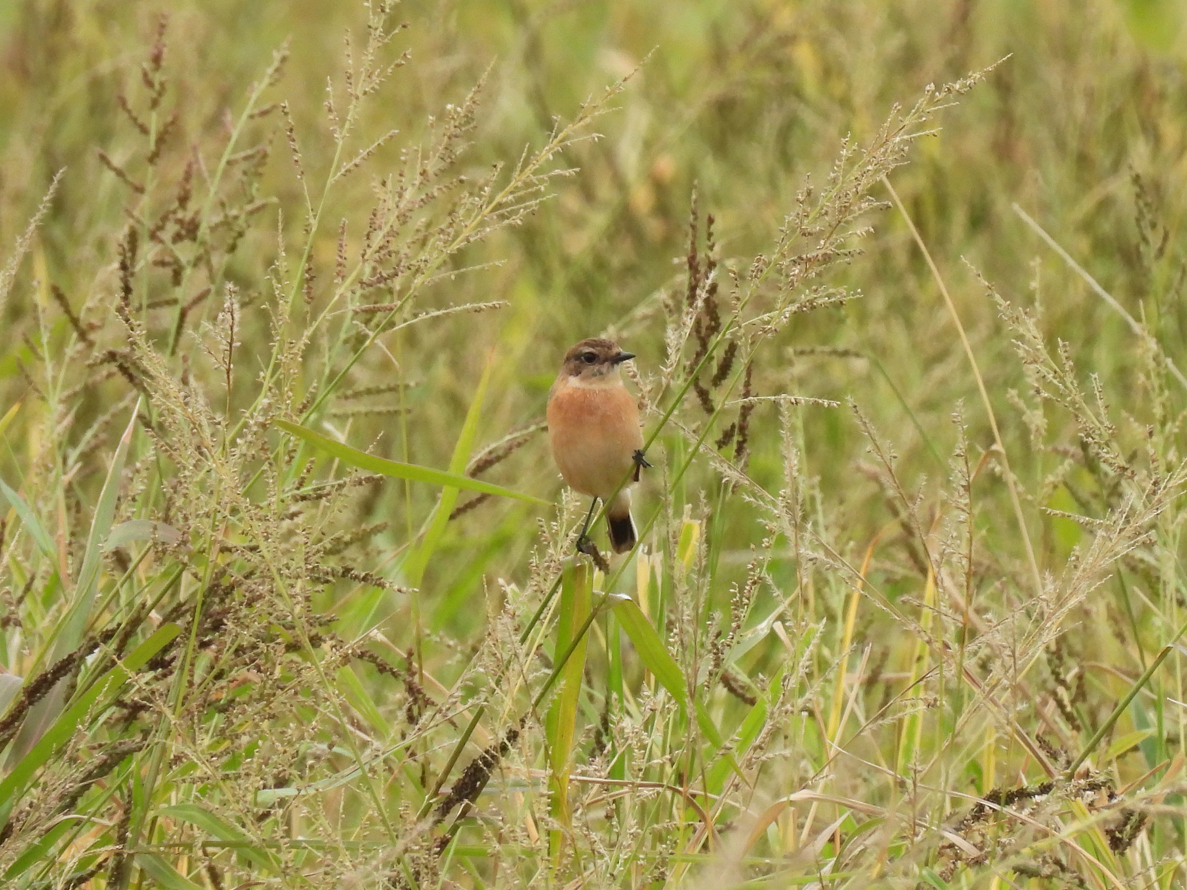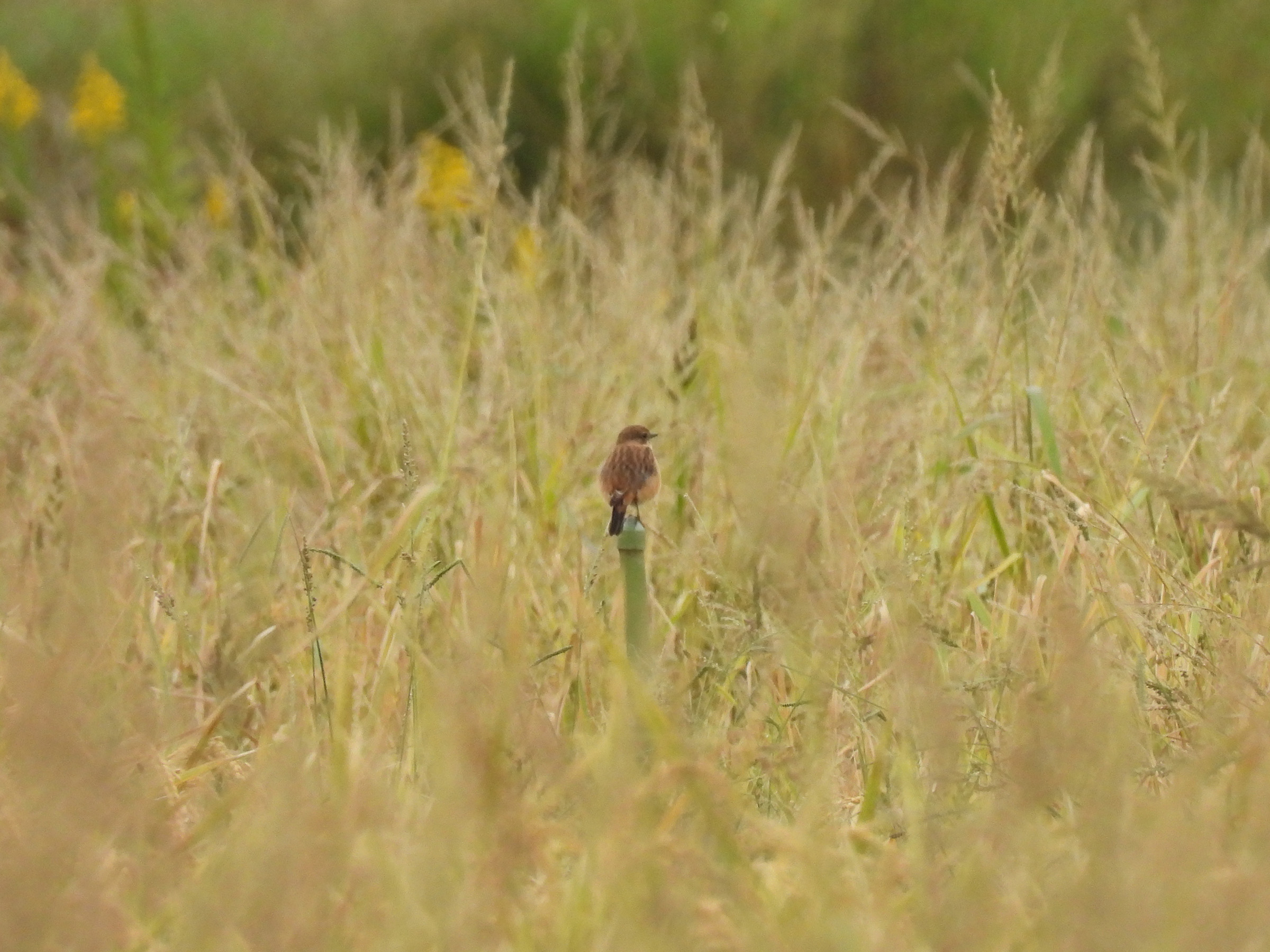 こちらは雌。ノビタキはこれからインドシナ半島まで行っちゃいます。いやー、スズメより小さいのに…。