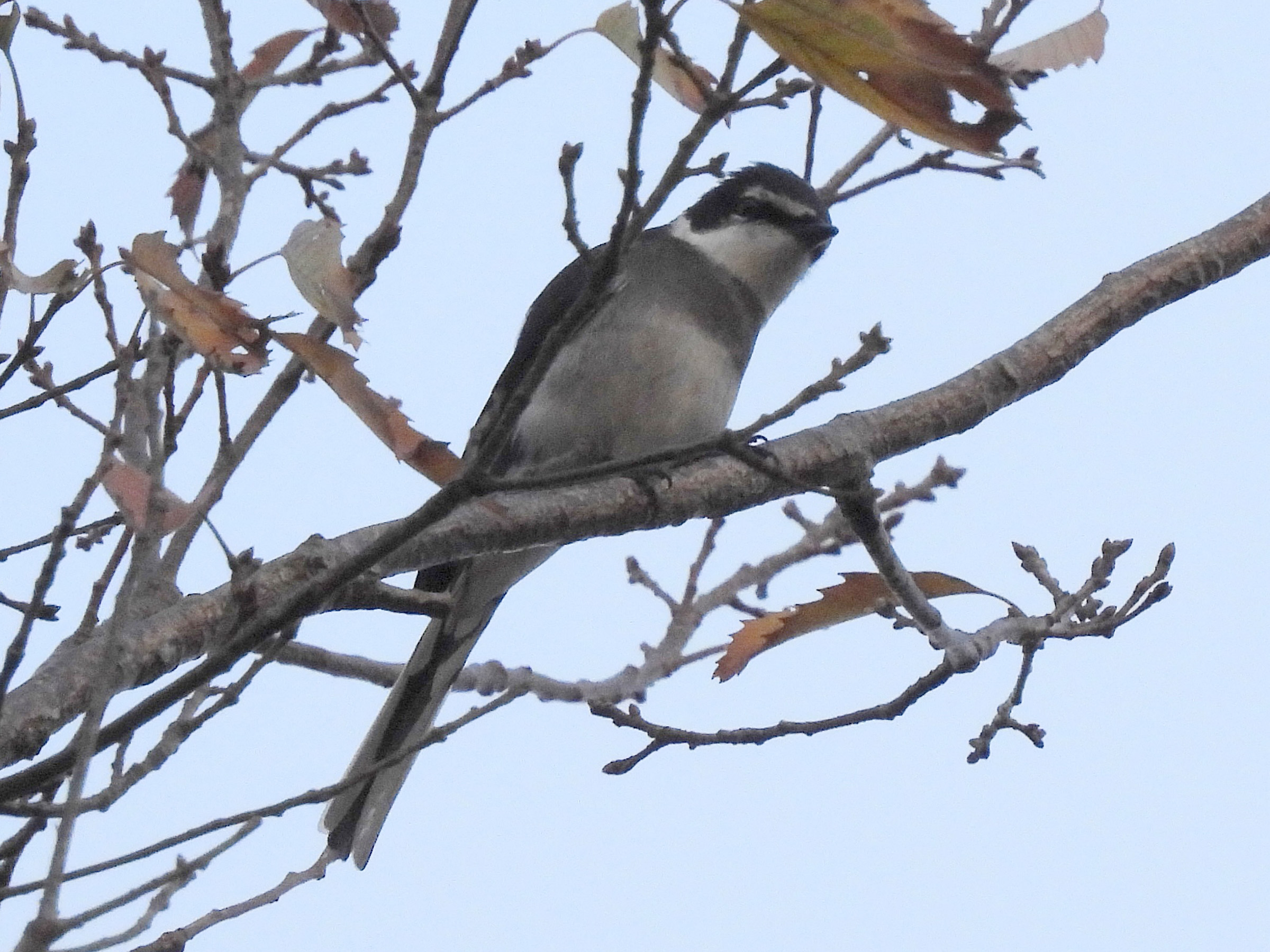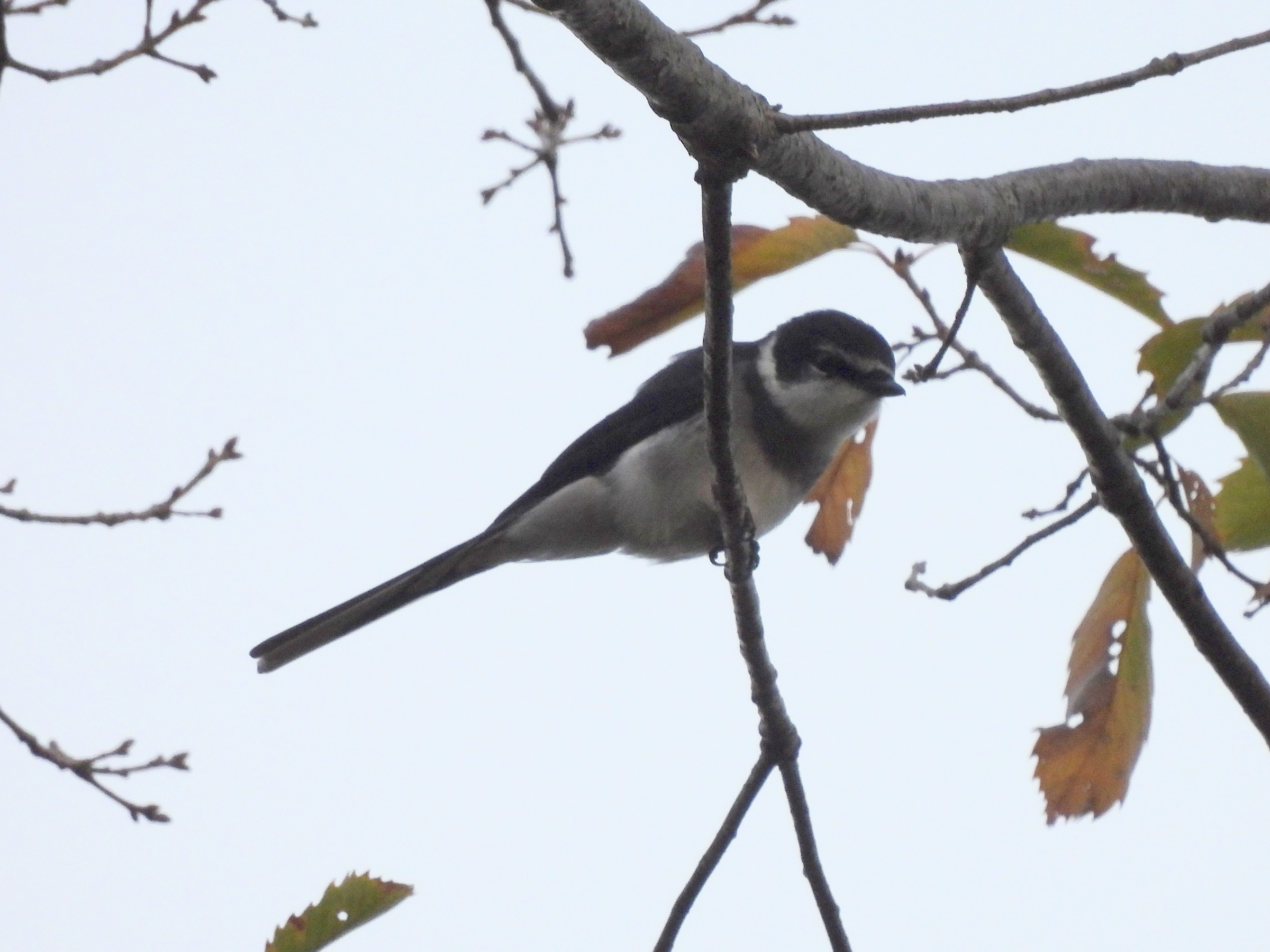 シジュウカラ、コゲラ、エナガの混群が木々の間を移動しているなか、ちょっと違うのがいるぞと。リュウキュウサンショウクイでした。