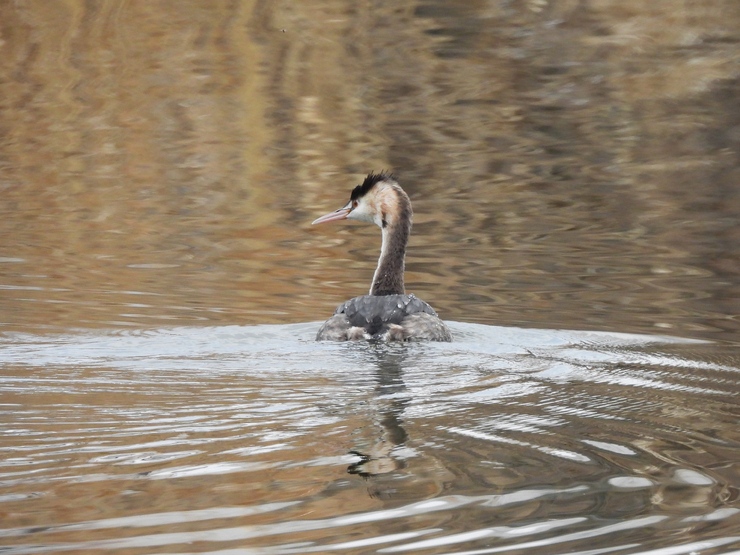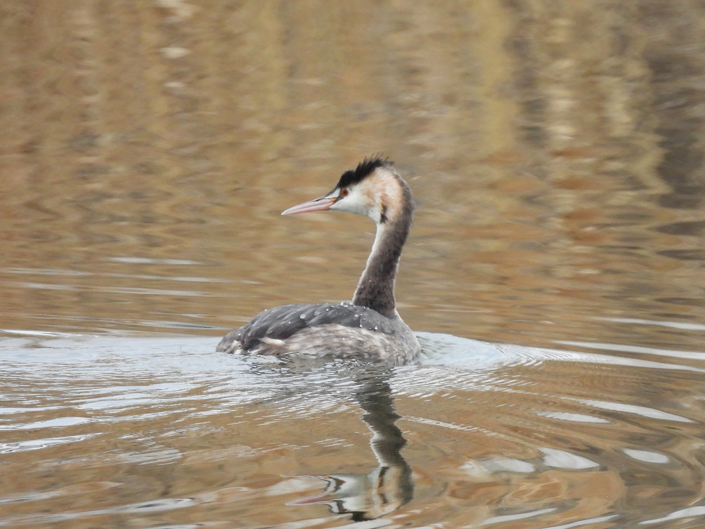今年は遅めにやってきました、カンムリカイツブリです。2月に入ってからやってきたようです。ちょっとカンムリが目立ち始めて、夏羽の茶色っぽい感じも出てきています。