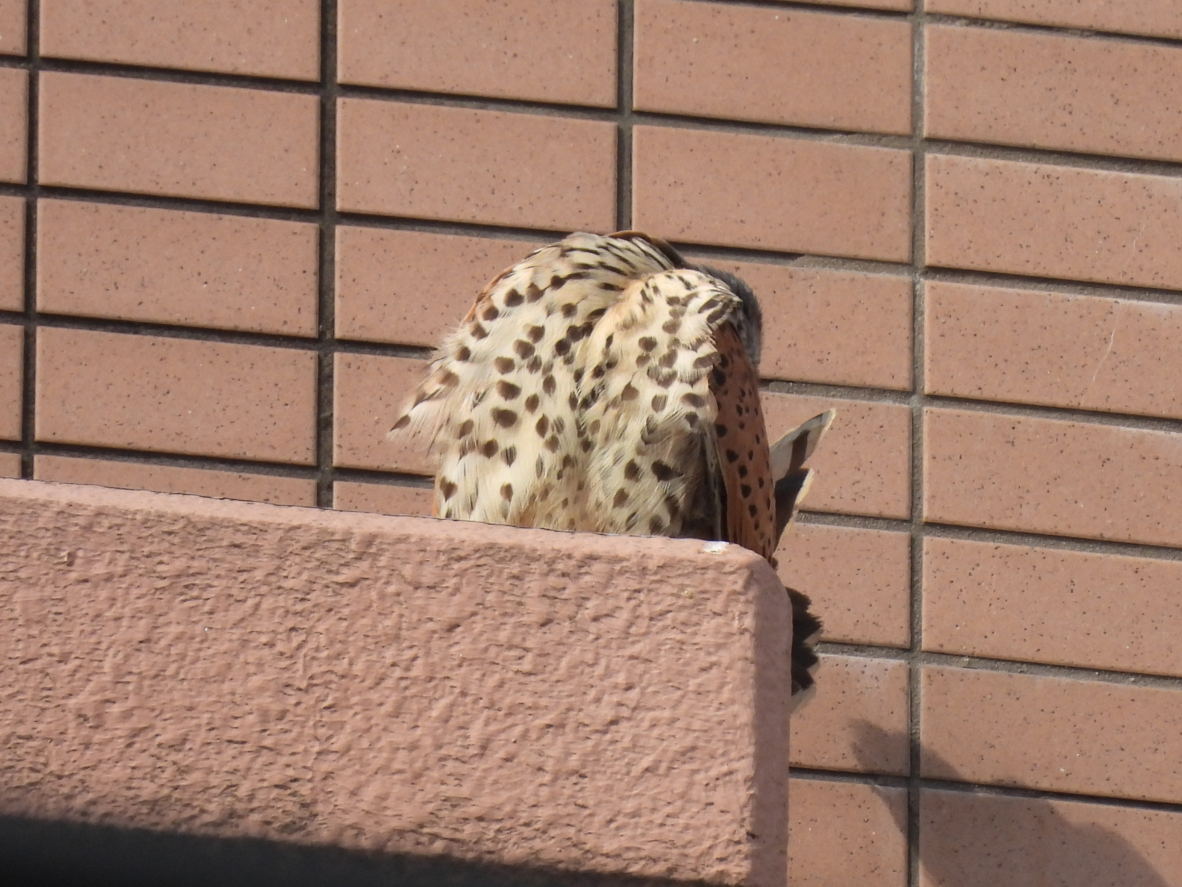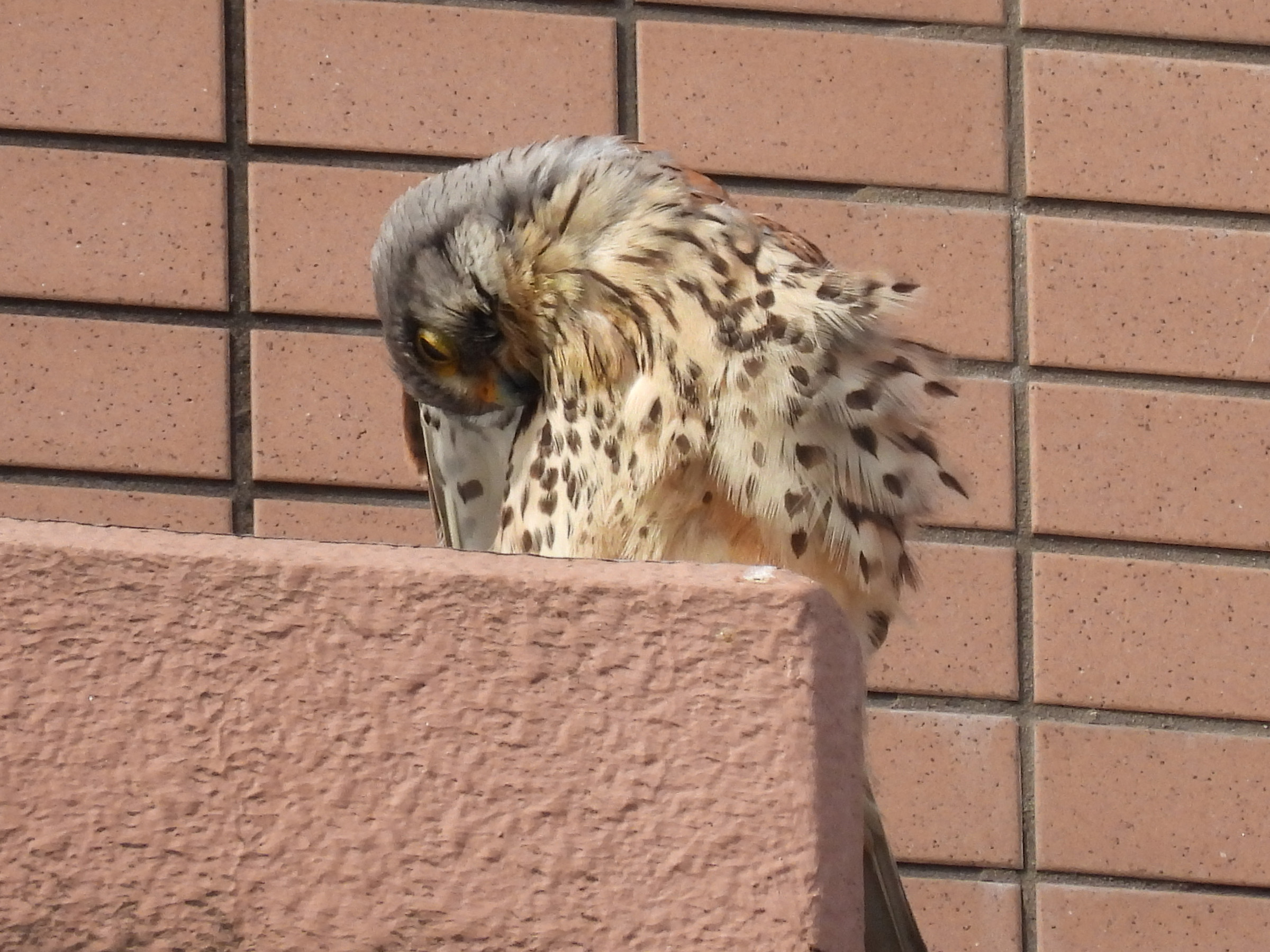 チョウゲンボウひさしに留まって羽繕い(動画)