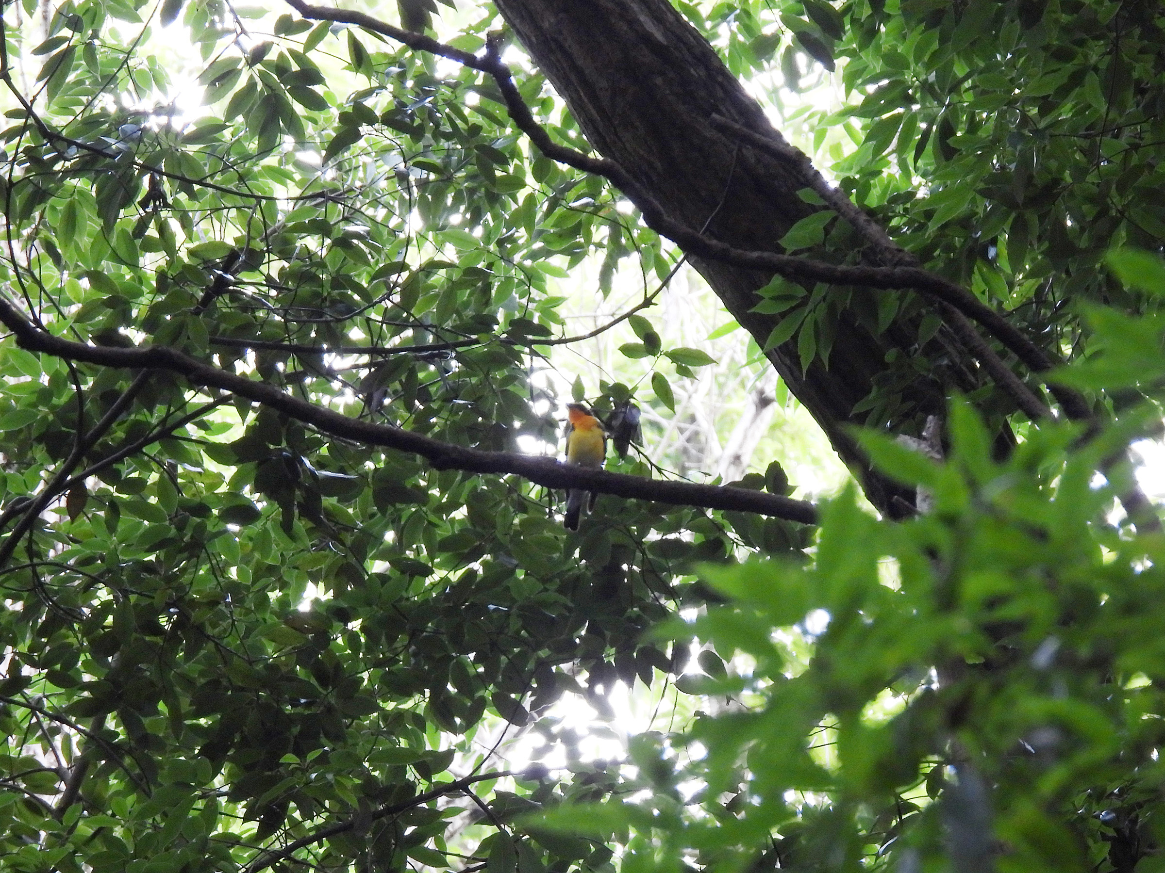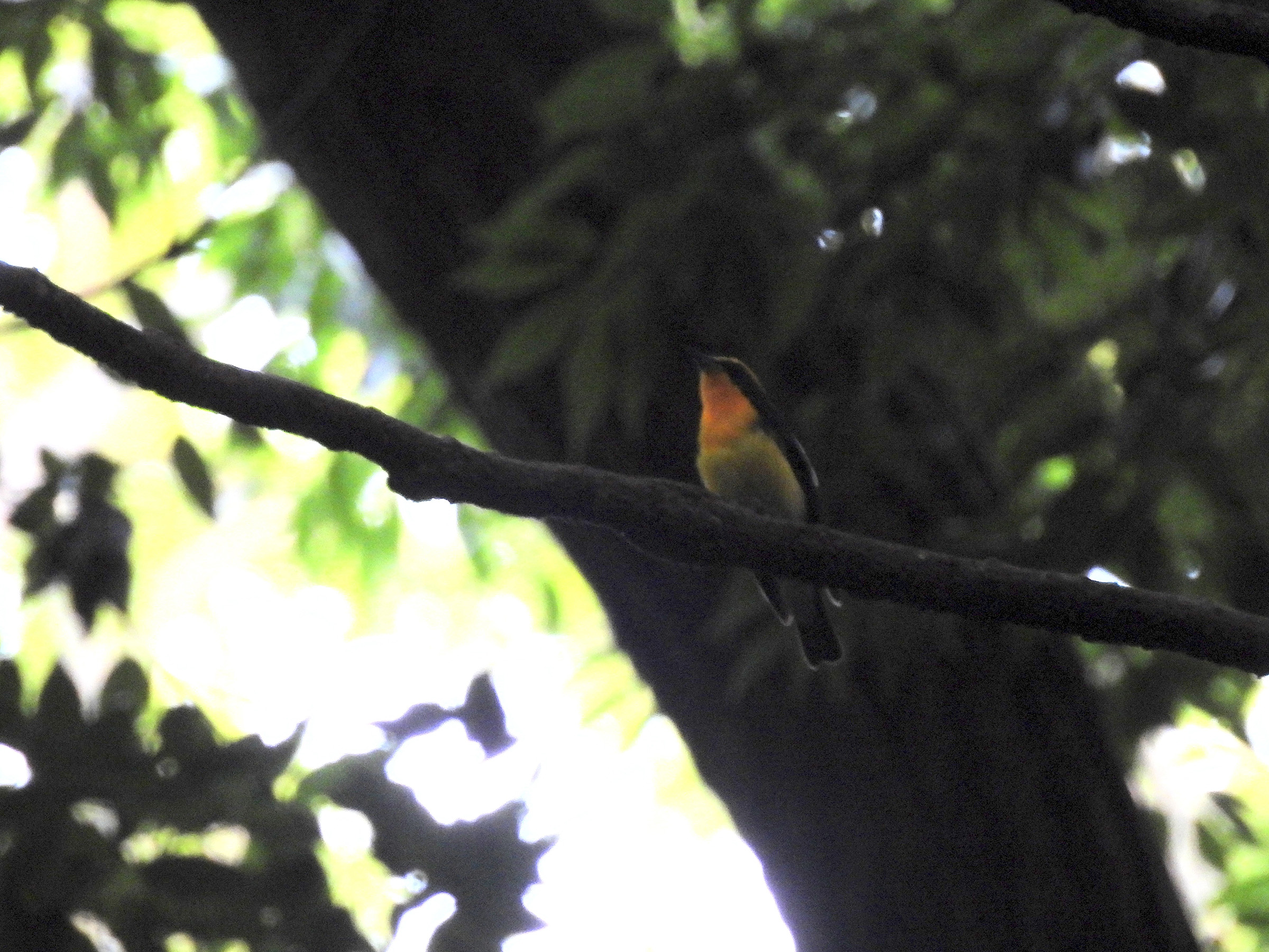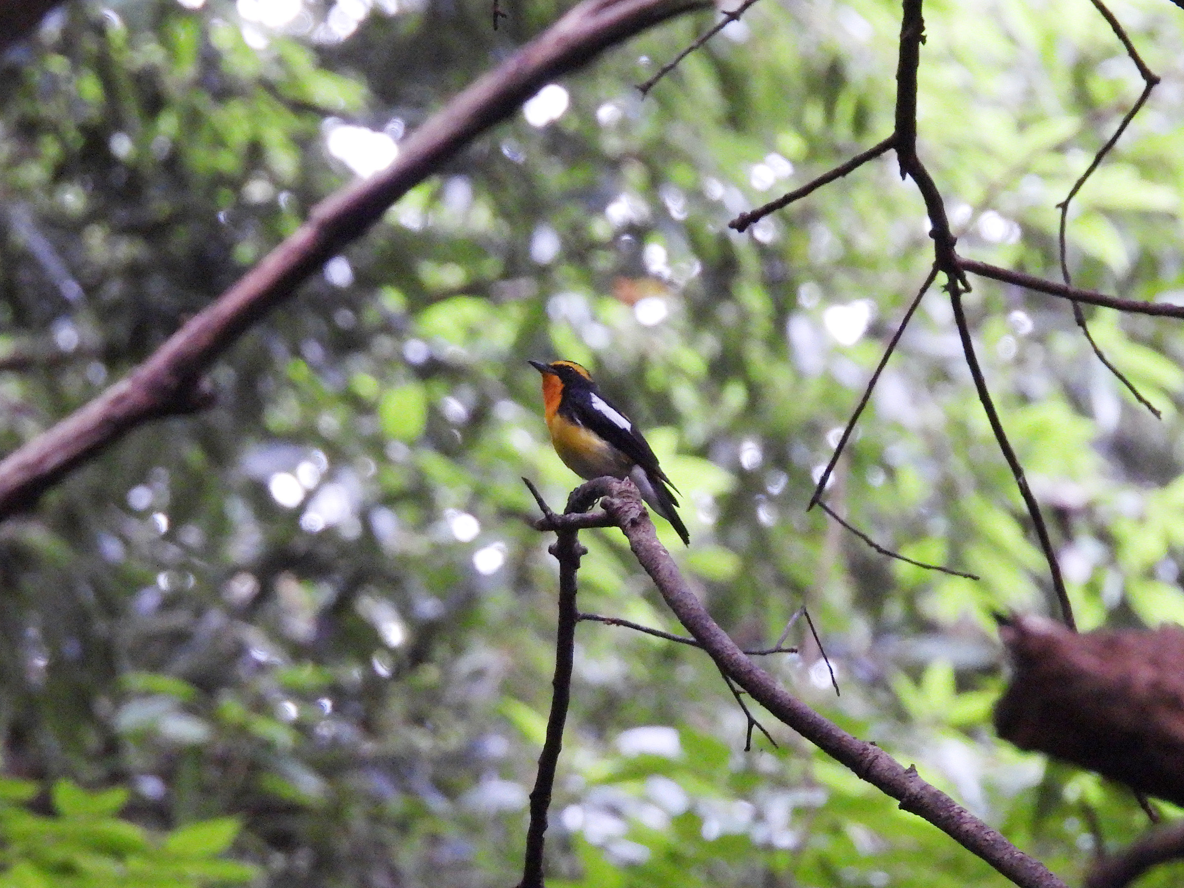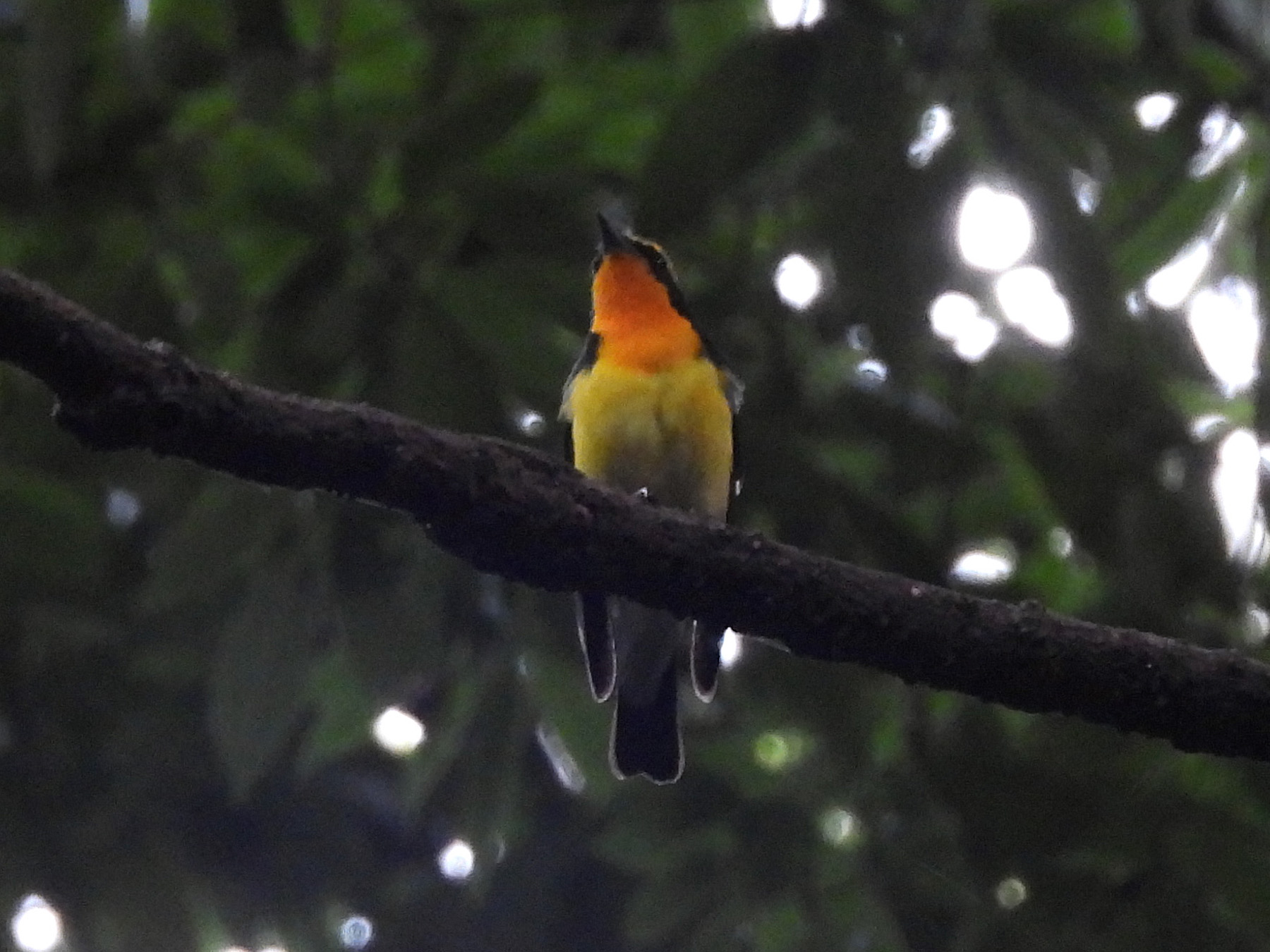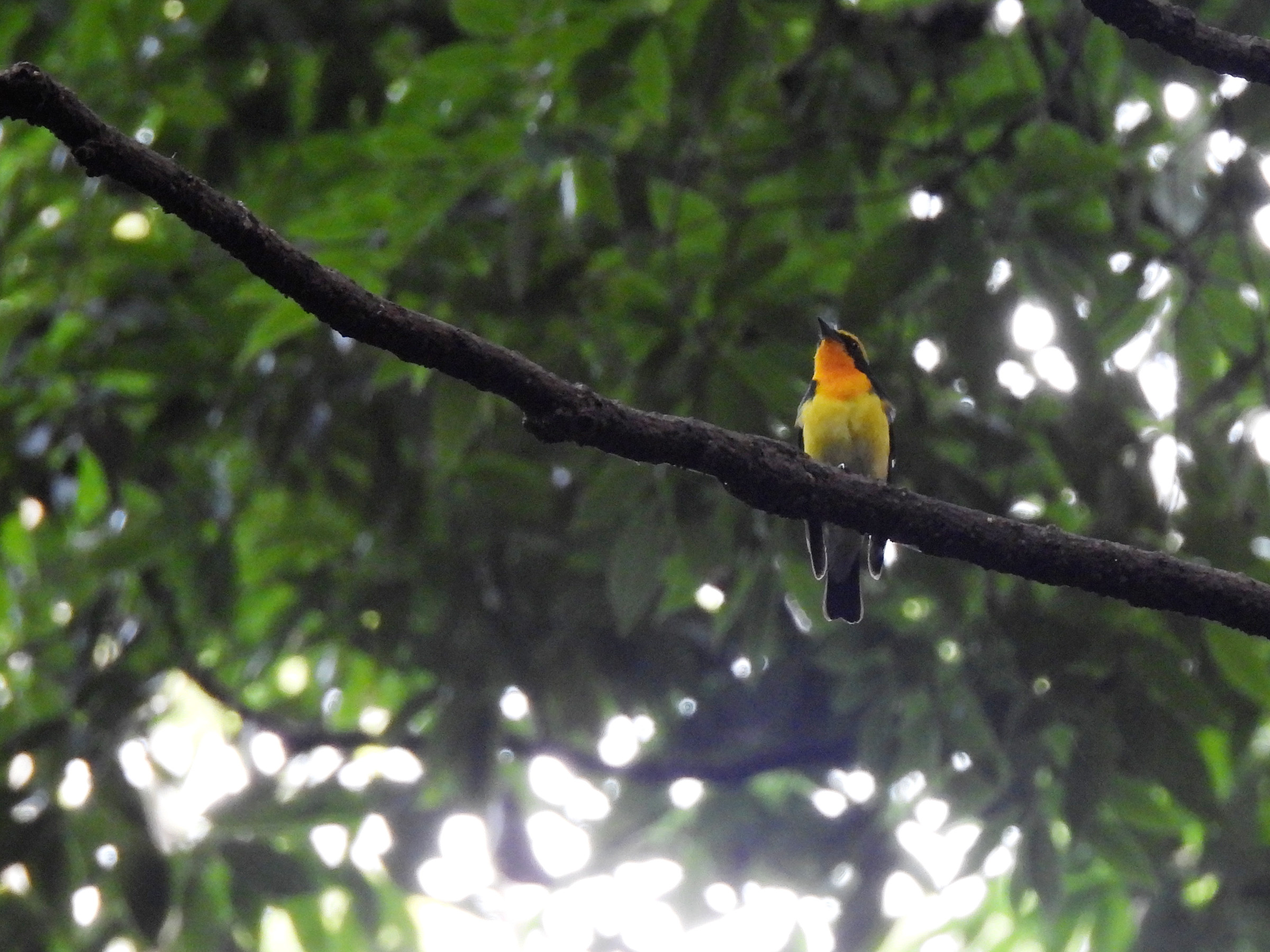 暗い森の中、キビタキの声が聞こえてきたので見つけました。鳴きながら枝から枝へ動き回っている場合と、ソングポジションでずっと囀っている場合がある気がします。ことの時は鳴きながら移動していました。