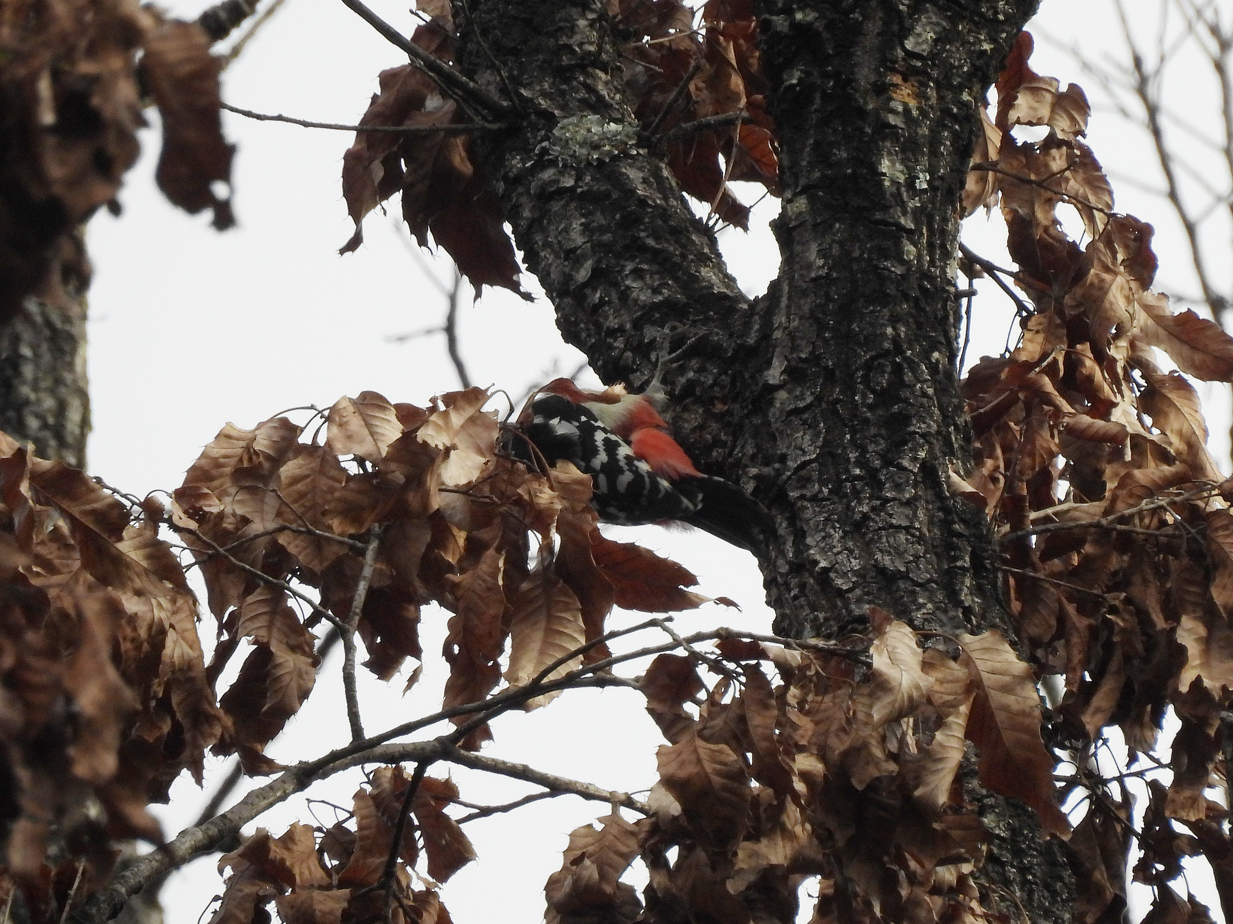 まずは、声が聞こえました。例の「キョッ」というやつです。古木に移動する影を発見し、アカゲラであること確認しました。