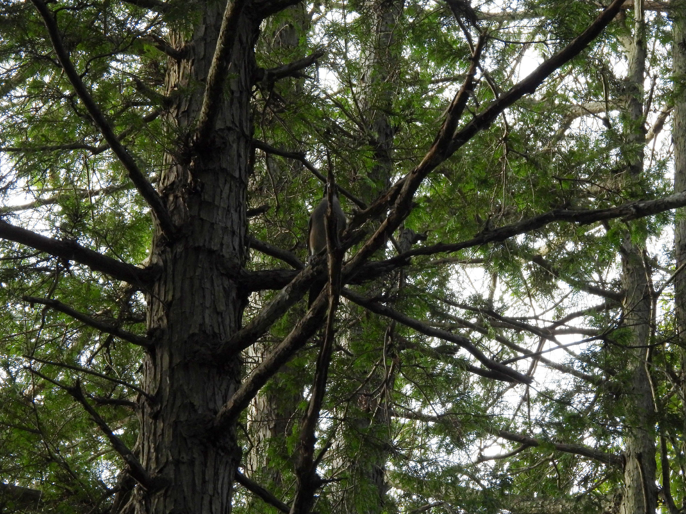 こちらも下尾筒の白と、身体下部の褐色部分(オレンジに見えるところ)が目立ちます。この時は6〜7羽はいたでしょうか?例の「ジェー、ジェー」という鳴き声と共に、木から木へ移っていきました。