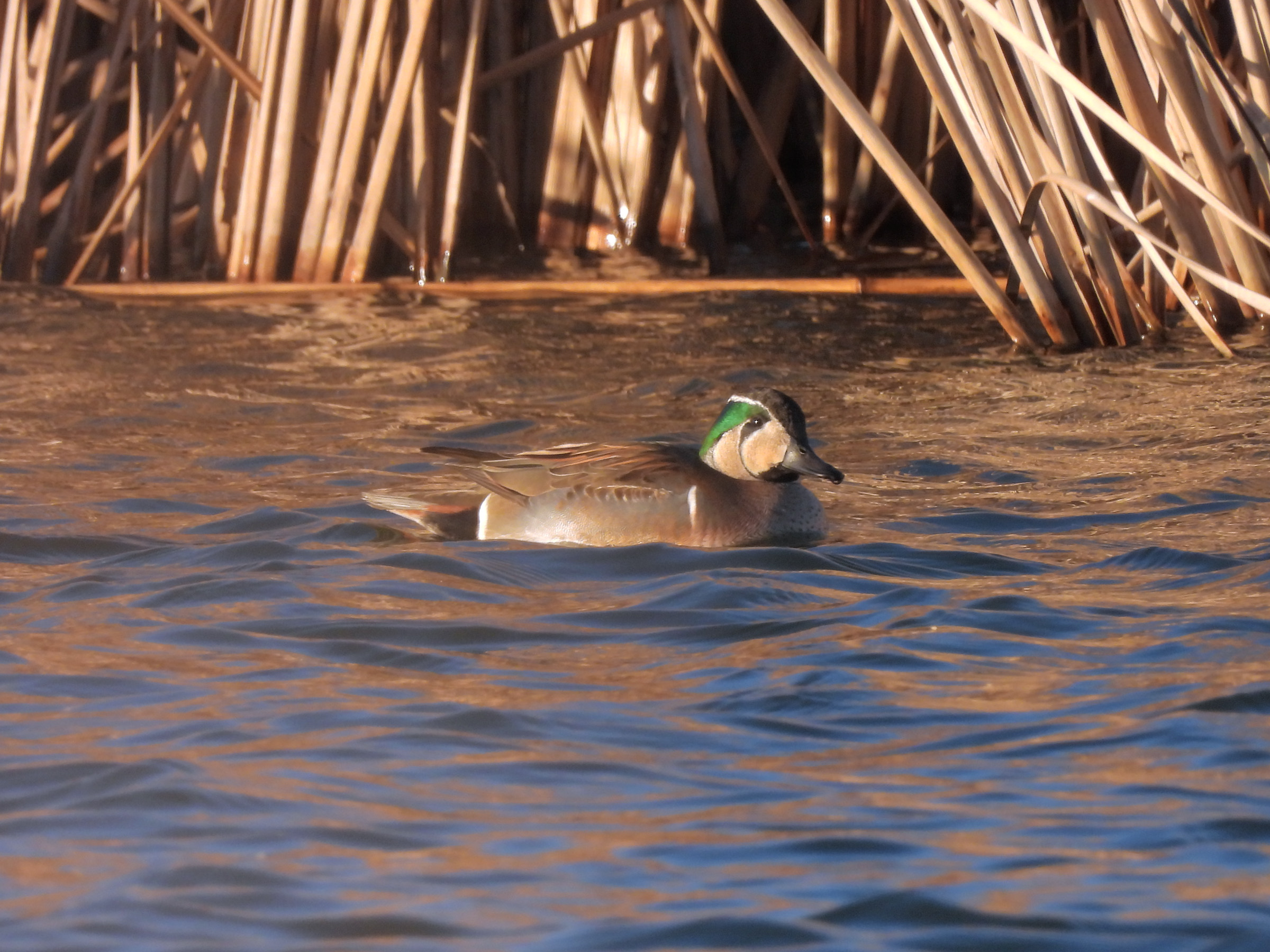 1月に入ってから、しばし滞在しているようです。私が見たときは、コガモと行動を共にしていました。以前、恩田川で見たときも、コガモ達に混じっていたのでコガモが好き?