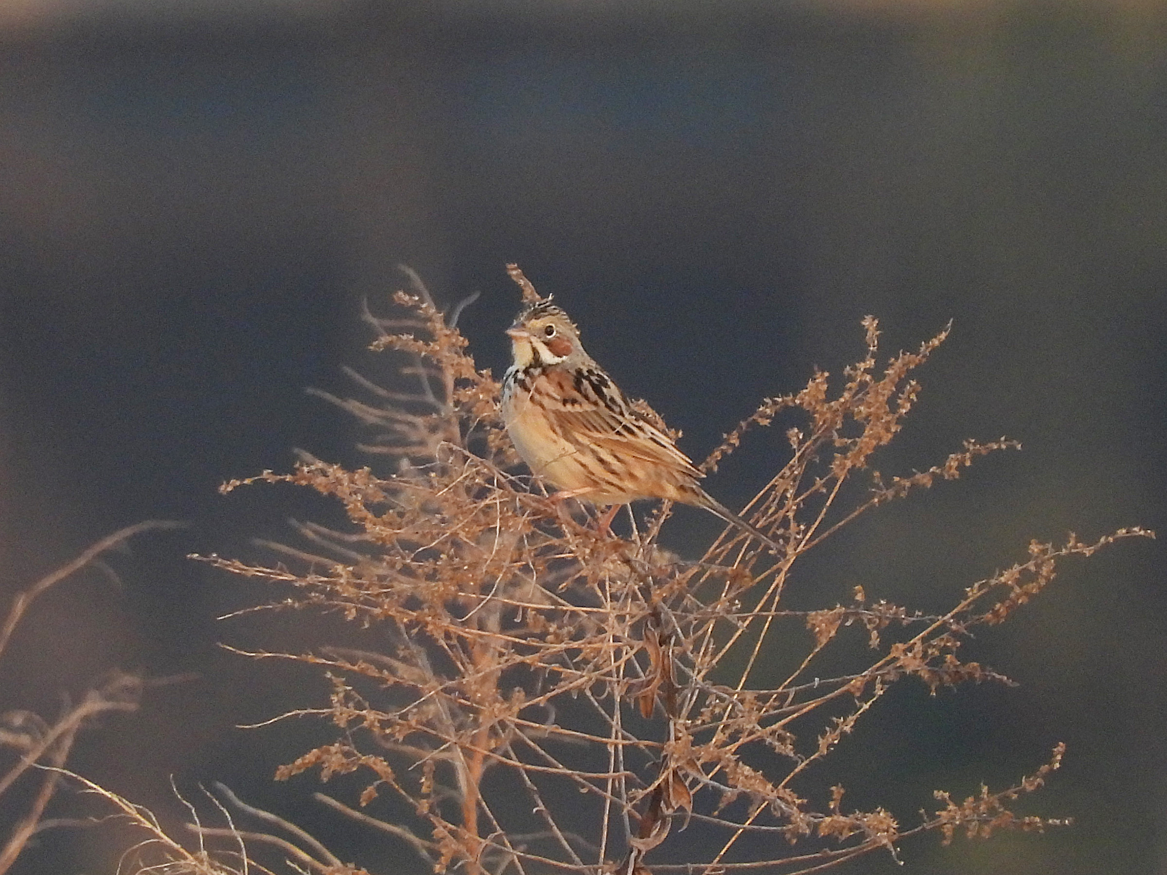 草むらにいましたが、時々先っぽに留まって姿を見せてくれました。確認できたのは3羽でした。草むらにすぐに引っ込んでしまうので、実際にはもっと居たかも知れません。