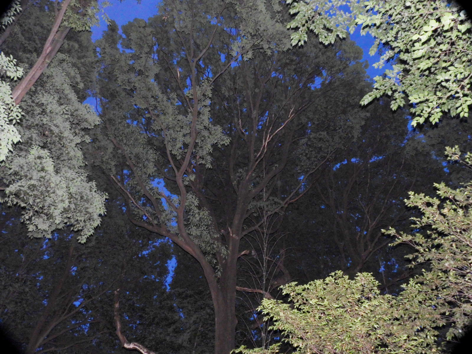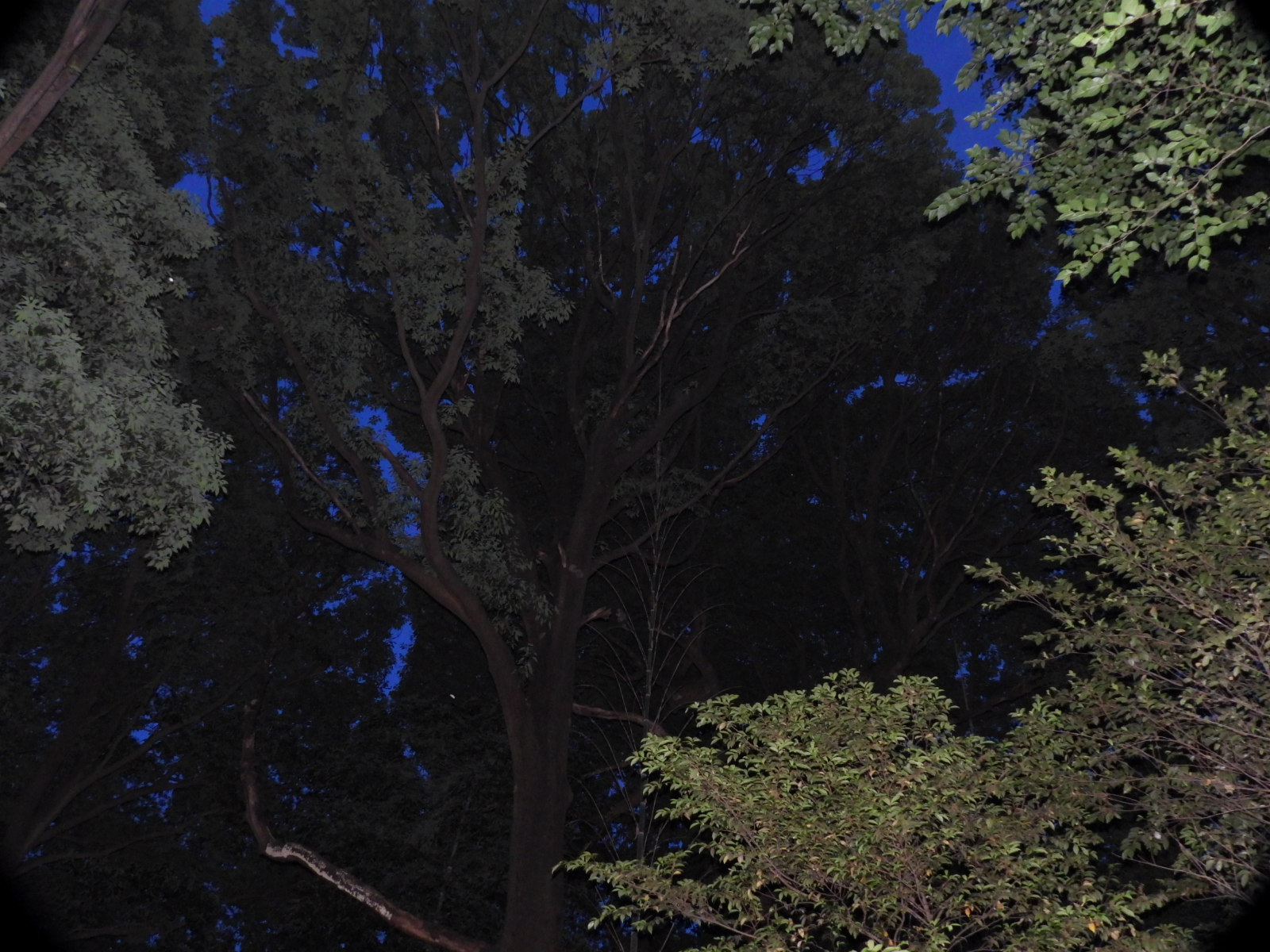 さらに暗くなって19時を回ったあたり、森の中ほどに移動したらしく、声の方へ近づきました。実は上の写真に既に写っています。