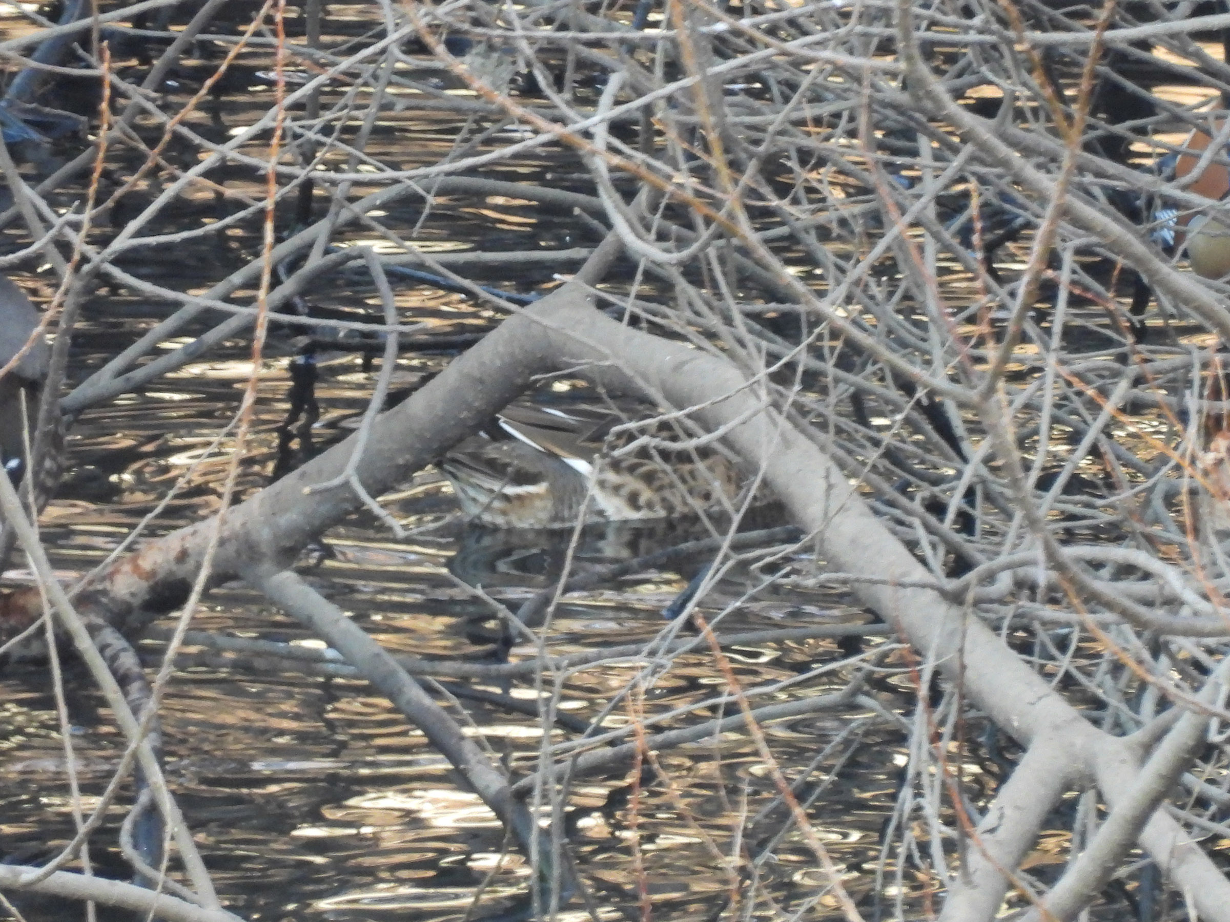 こちらなんとか写った1枚。ですが、トモエガモの雌ではないかと思いました。近くにはコガモも居たので断定はできませんが、顔が見えればなーっと。