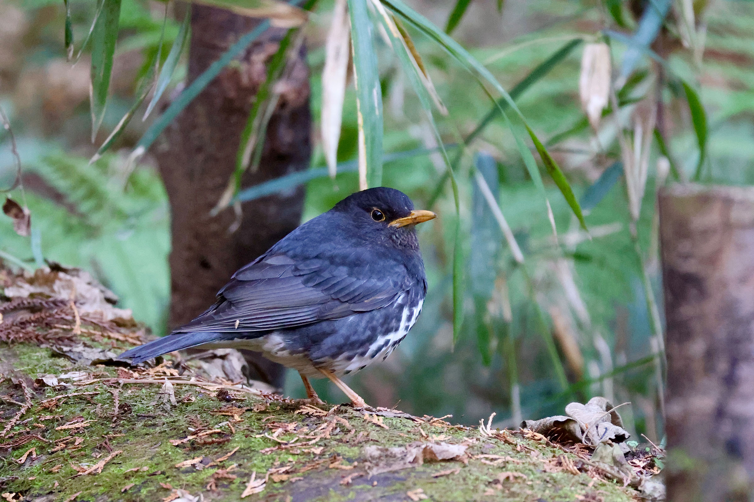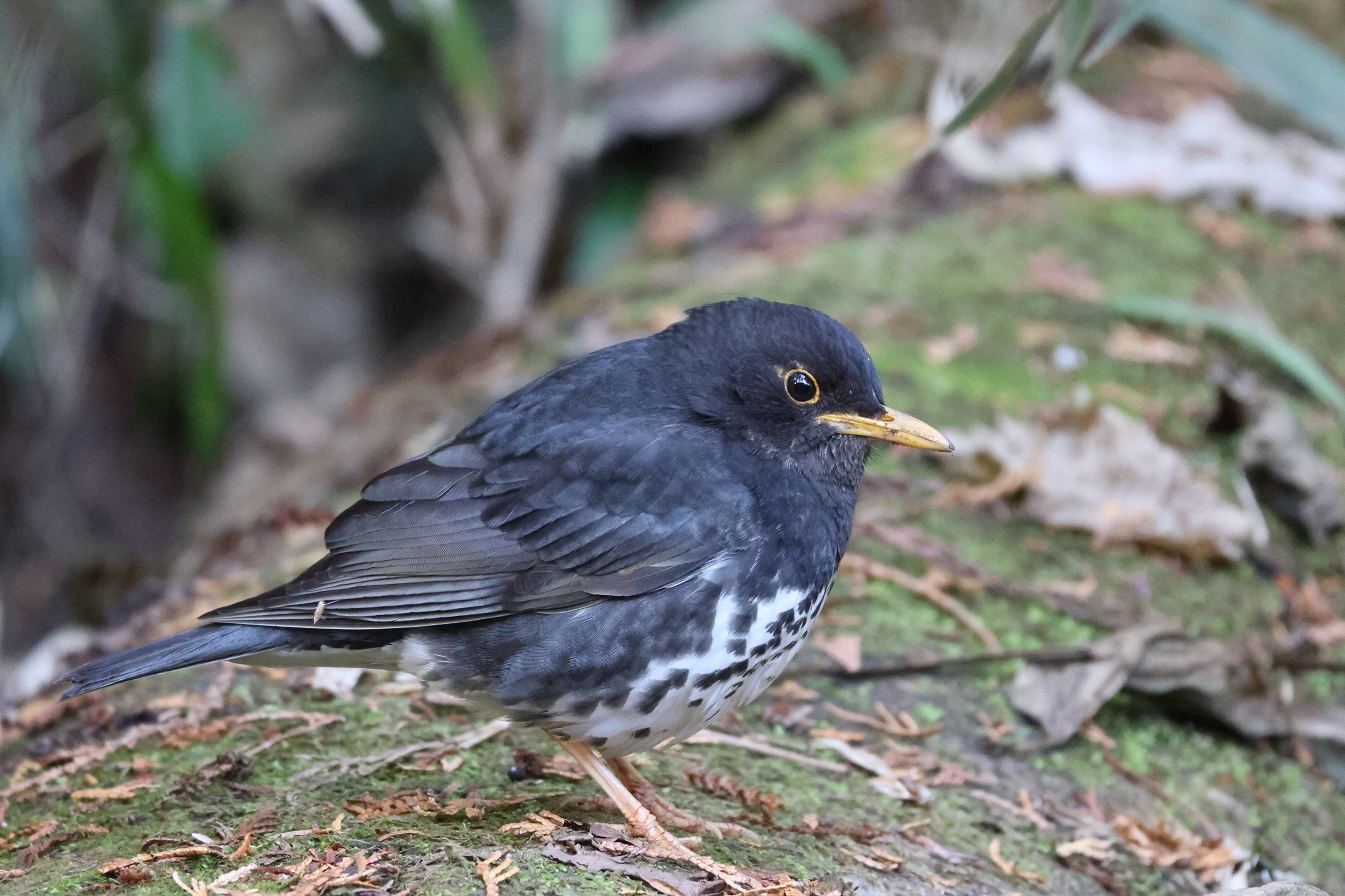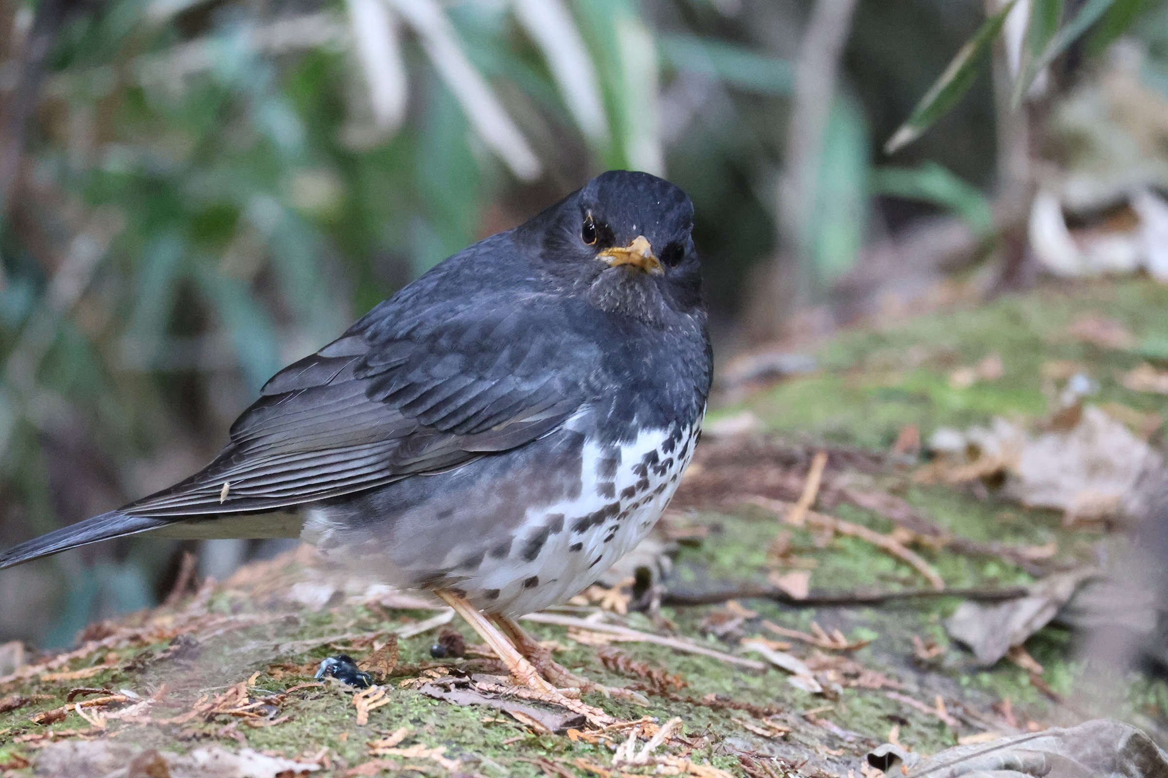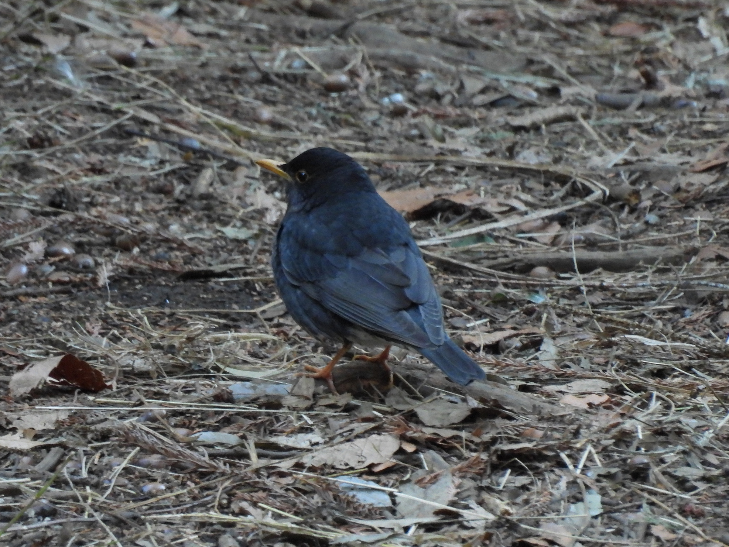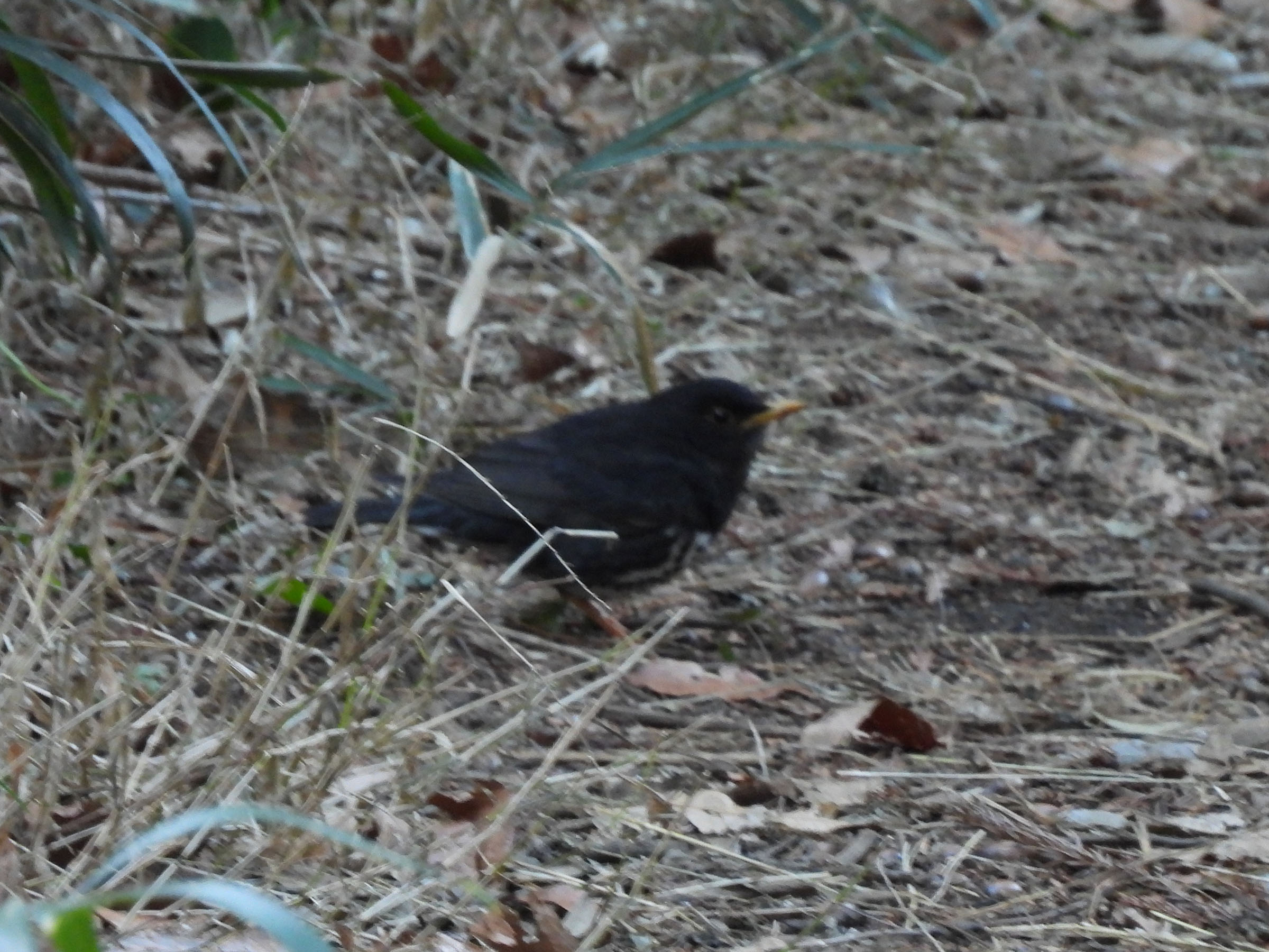 至近距離で動く野鳥が居たので見てみるとクロツグミでした。2mくらいでしょうか。とにかく飛ばさないようにとシャッターをきりましたが直ぐに逃げてしまいました。ここで越冬してるということは温暖化の影響ですかね?