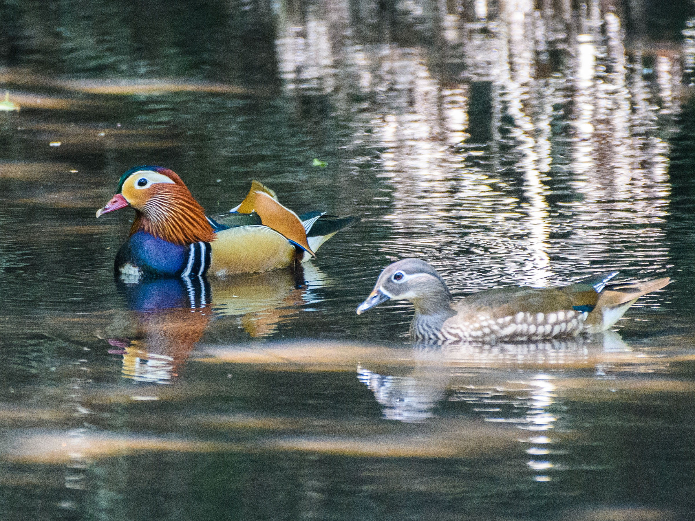 しかしながら、雄は色鮮やかではありますが、少し羽の婚姻時の派手っぷりからは少し落ち着いて見えます。下の過去のオシドリの写真と比べると分かると思います。