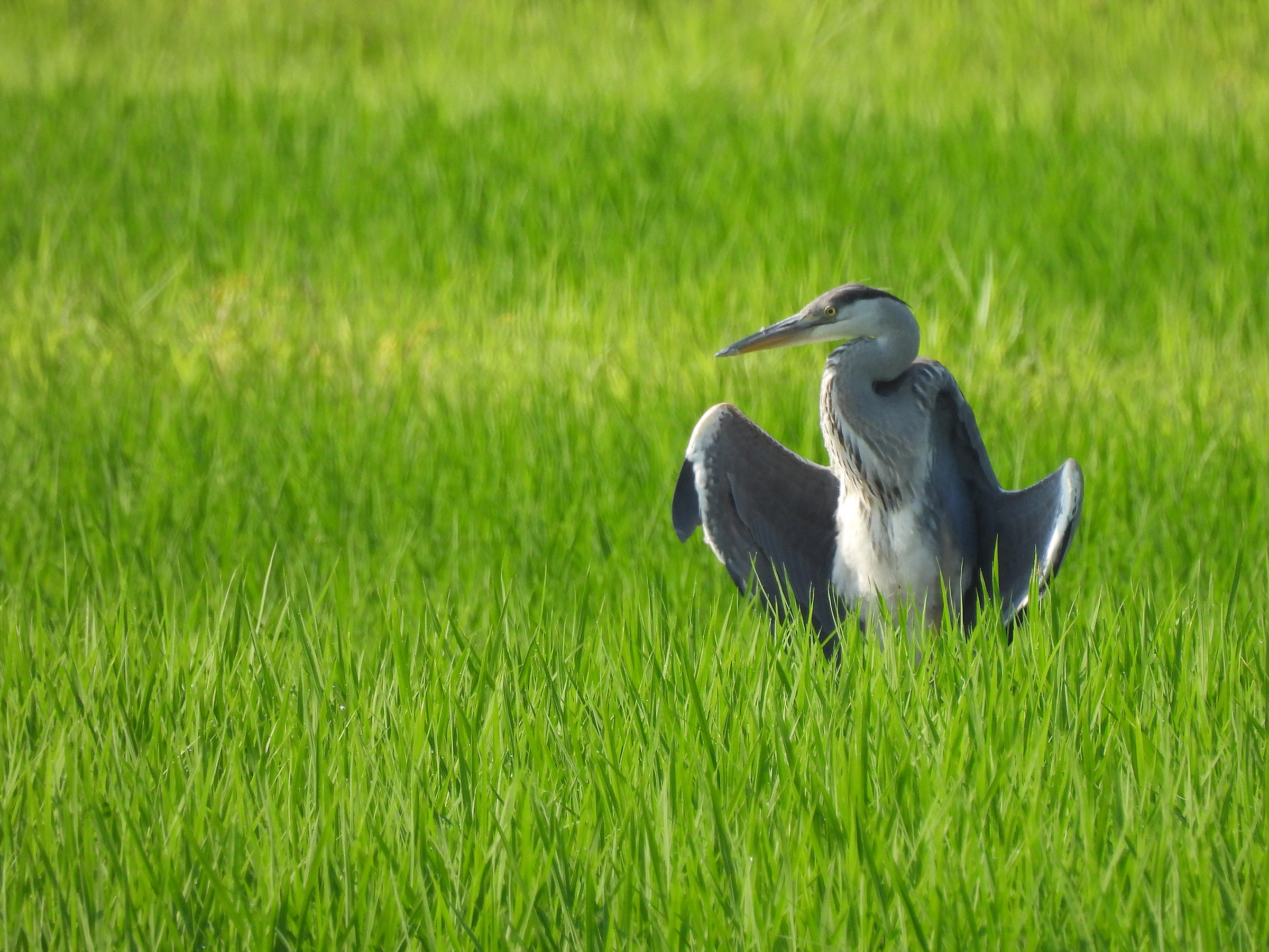 田んぼでアオサギの姿をよく見かける時期になりました。この週は毎日非常に暑くて、野鳥を見るのも森の中ならまだしも、1時間くらいが限界かなという日々でした。
