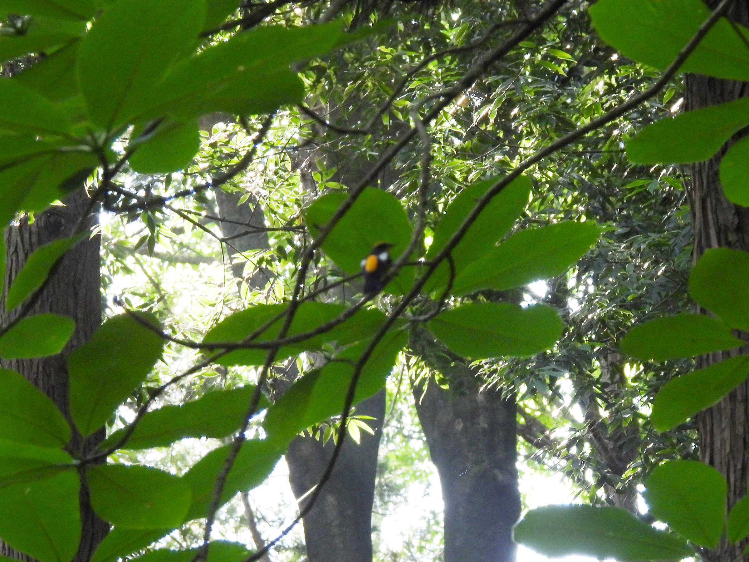 そして、飛んだと思ったら、他の雄が現れたようでした。2羽が追いかけ合うところで見失いました。キビタキはなかなか喧嘩っぱやくて、ナワバリ内に侵入すると執拗に追いかけ、時には揉み合いになります。