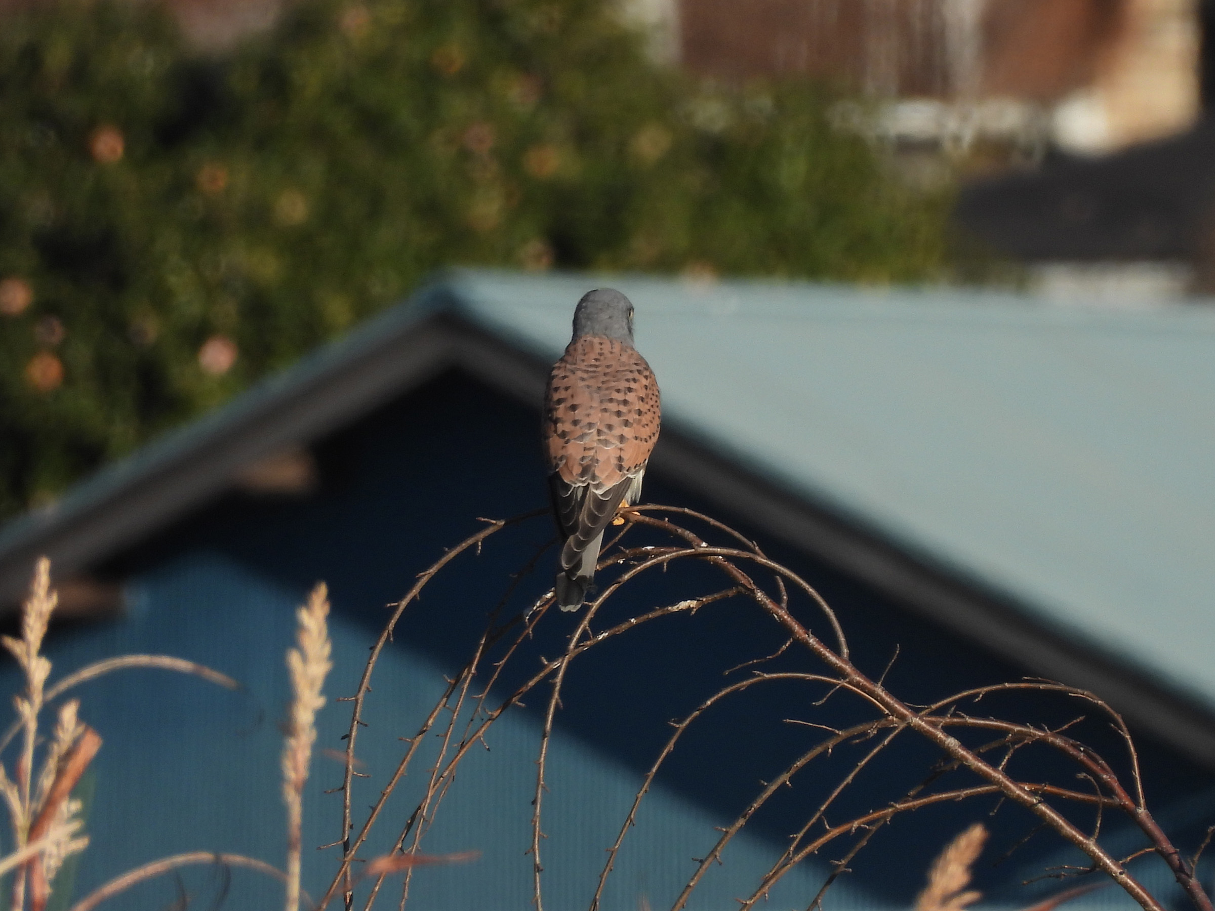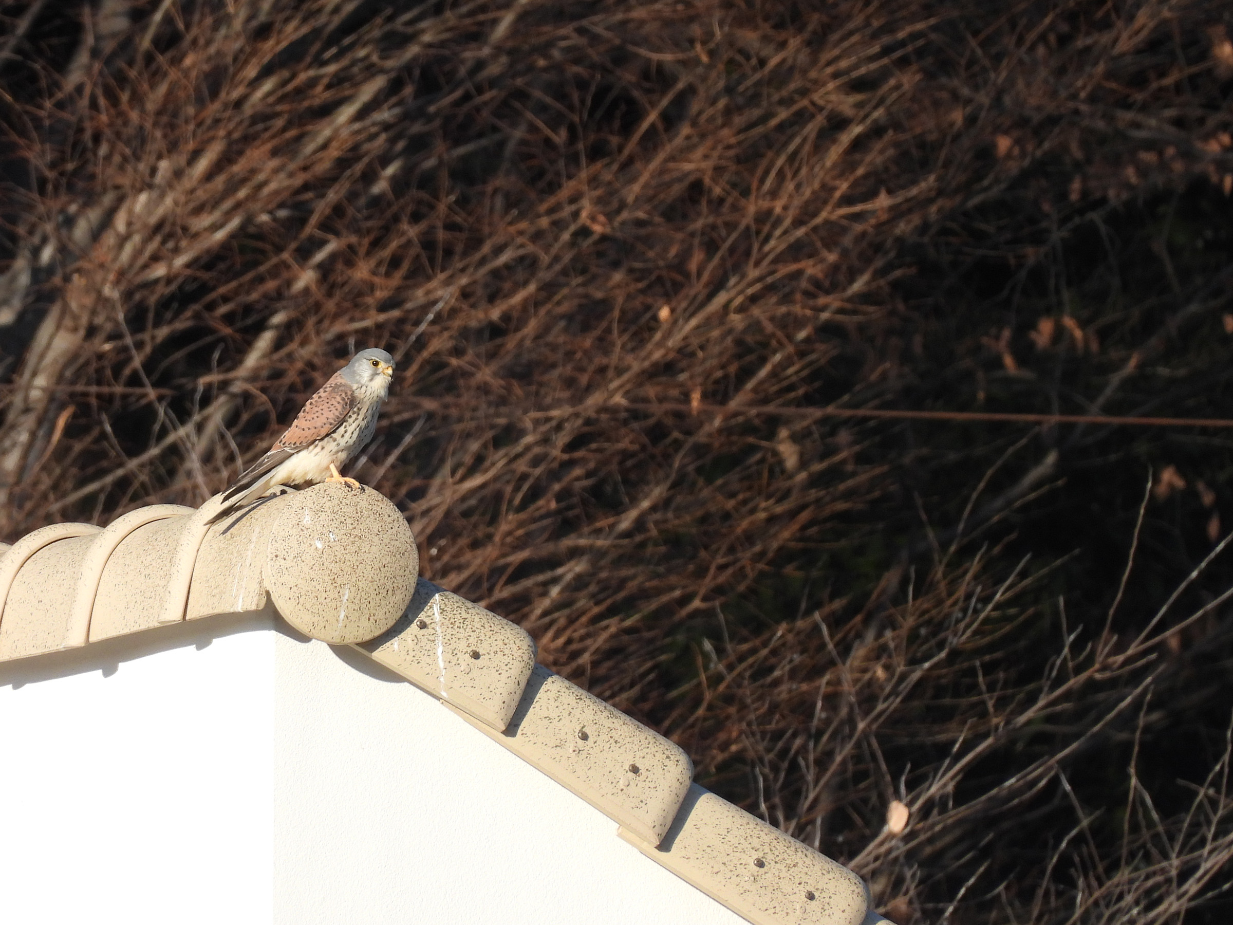 ちょっと離れて民家の屋根にも。しかしながら、獲物を捕らえているところは見られませんでした。